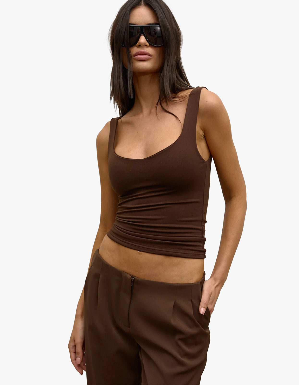 The Ray Tank by Bayse is a sleek essential designed with a flattering scoop neckline and a form-fitting silhouette.