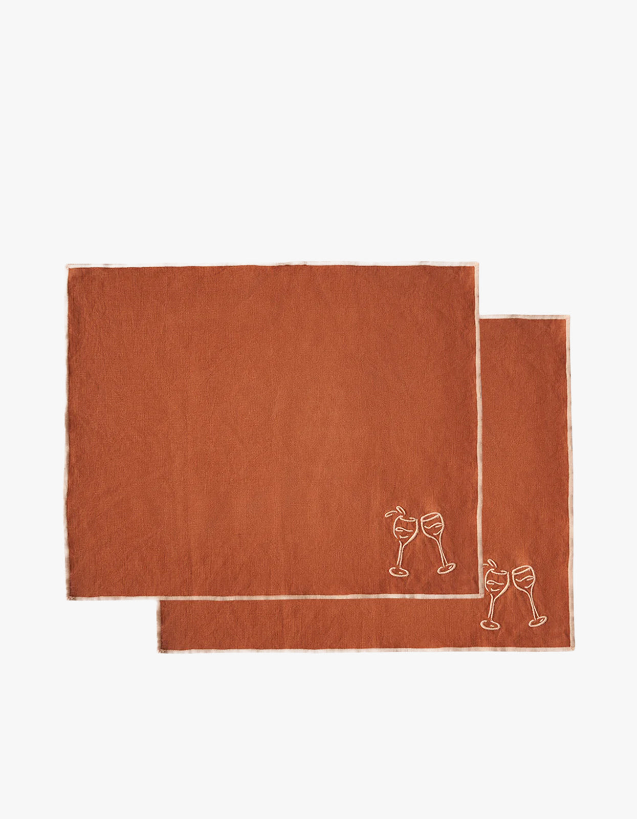 Elevate your dining experience with the Embroidered Linen Placemat Set - Cheers, from Black Blaze.