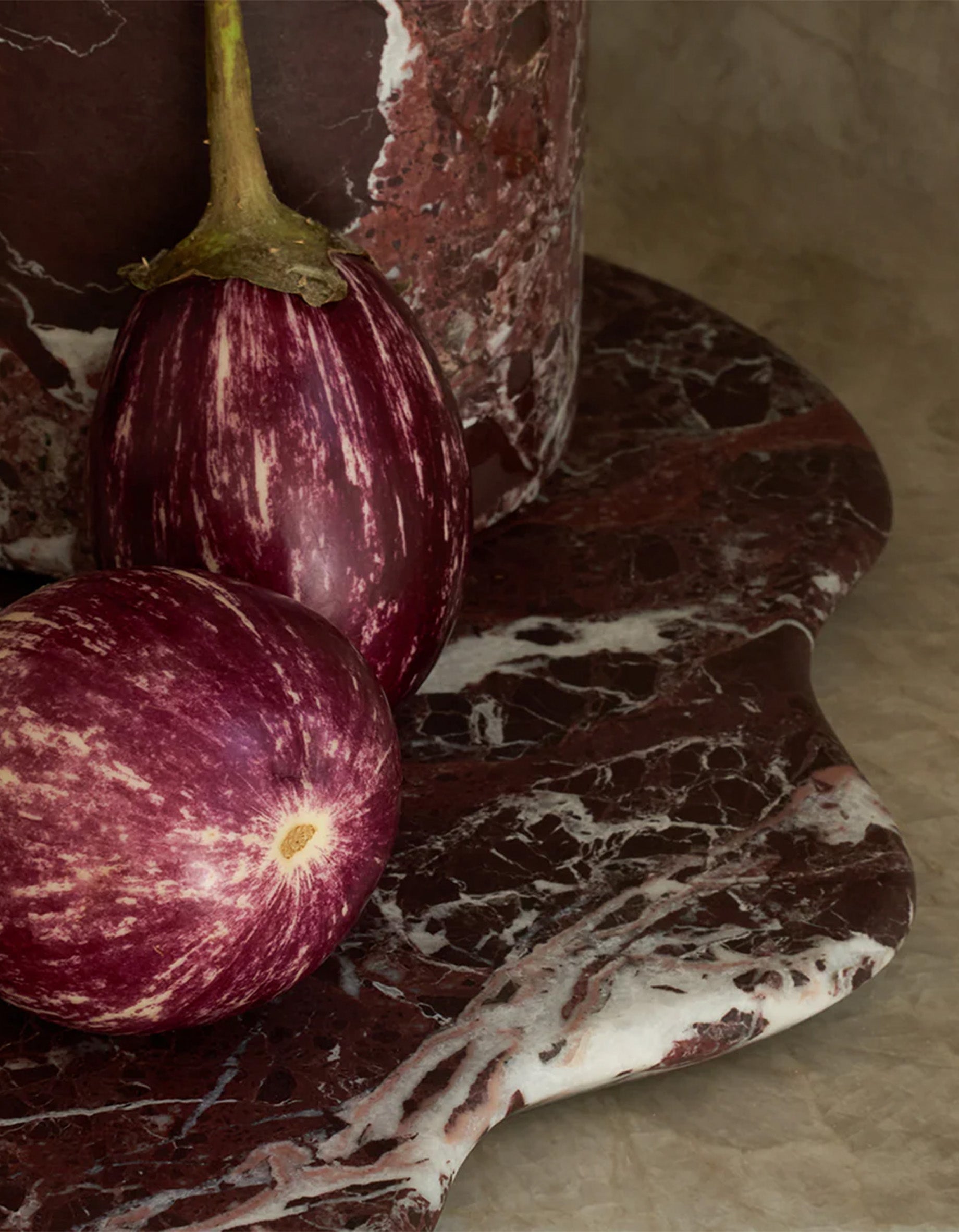 Made from rich Rosso Levanto marble, it's fluid, lake-like contour suits cheeses and small bites, and it doubles as a clean, sculptural centerpiece. Minimal lines meet deep burgundy veining for natural elegance, making it perfect for serving appetizers, cheeses, desserts, or charcuterie with timeless style.