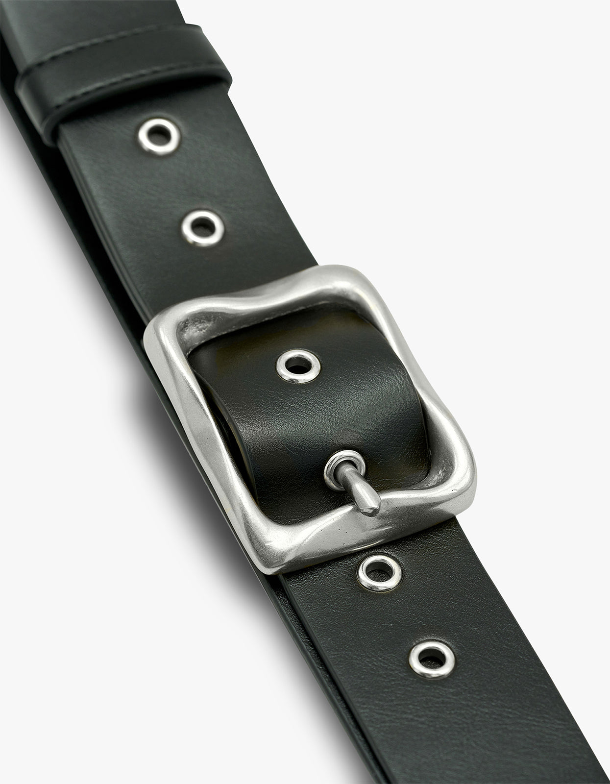 This stylish accessory features a brass buckle and eyelet detailing, adding a touch of sophistication to any look. Complete your wardrobe with this elegant and tasteful essential.