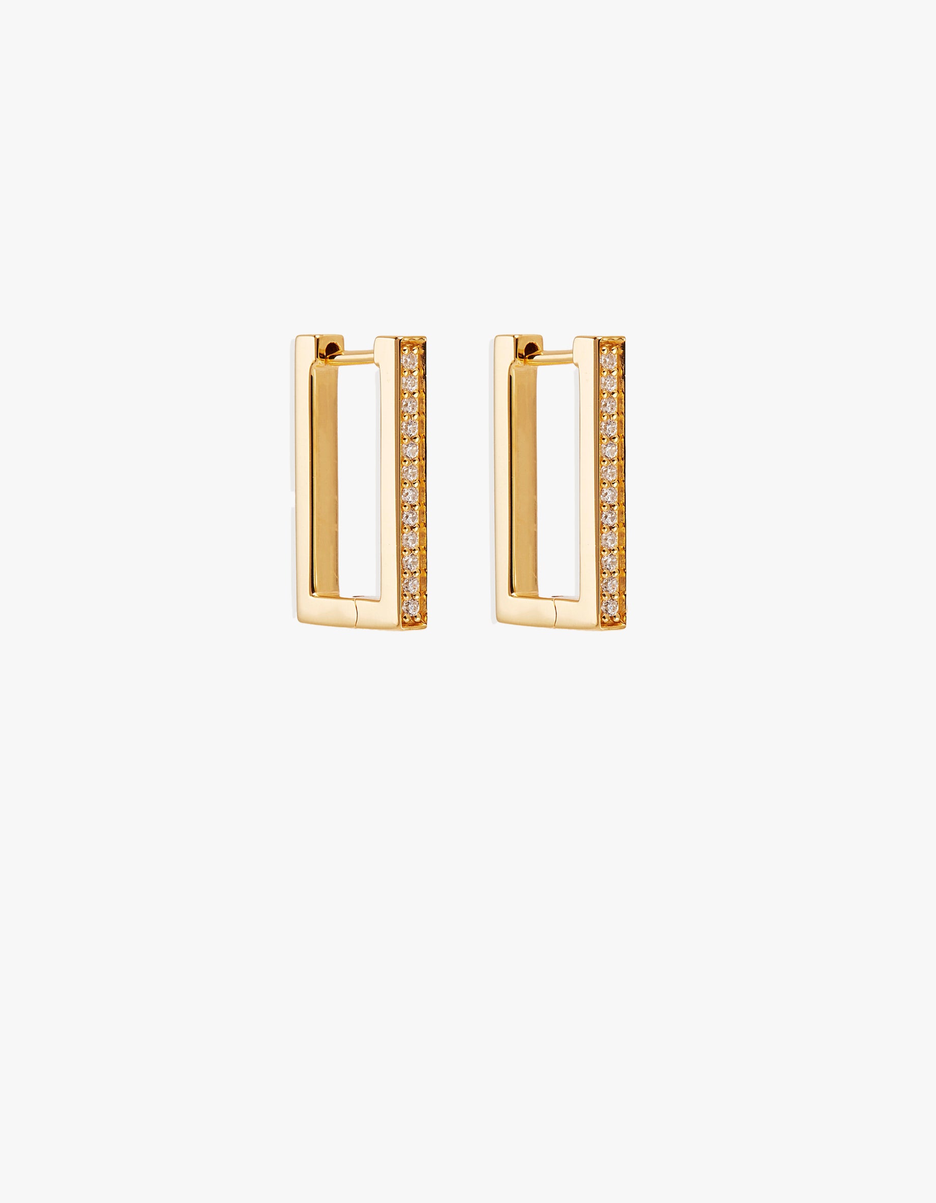 These hardware-inspired hoops, adorned with sparkling cubic zirconia crystals, exude elegance and sophistication. Designed to be cherished, they make the perfect daily accessory for the modern woman.
