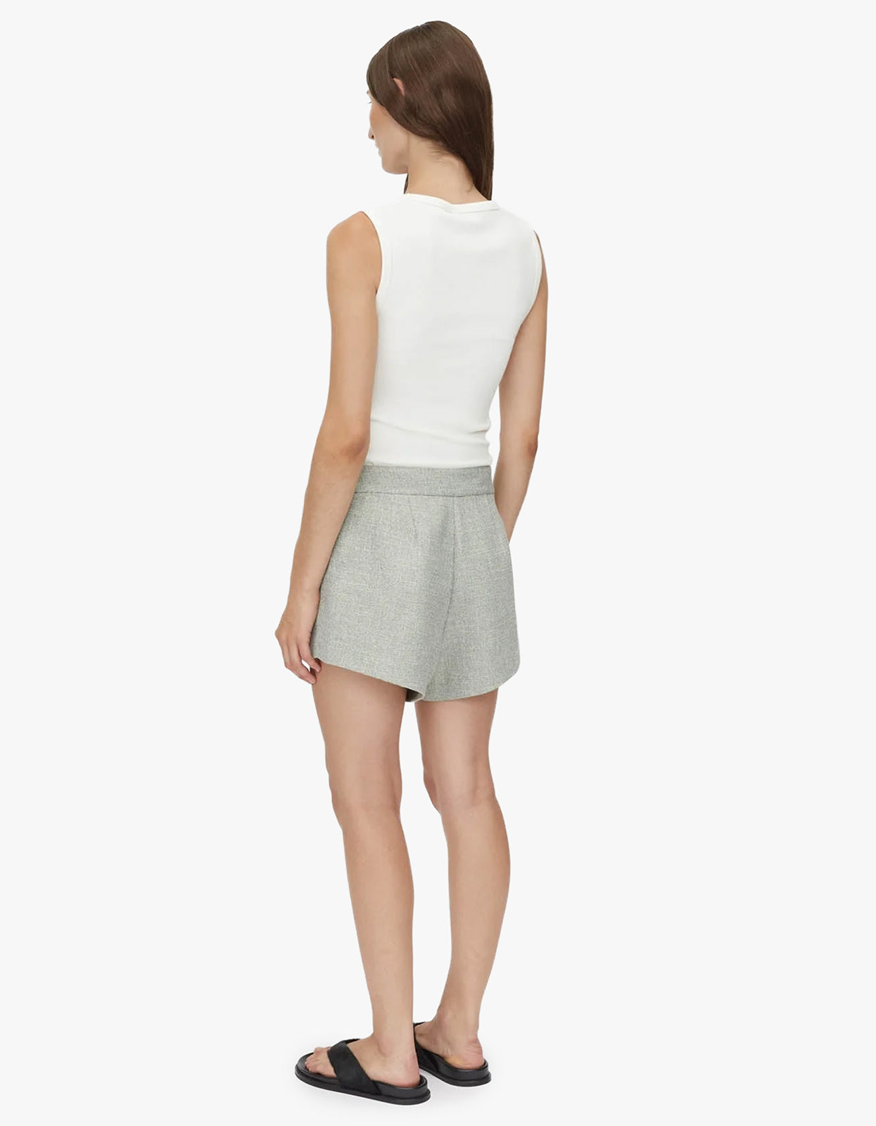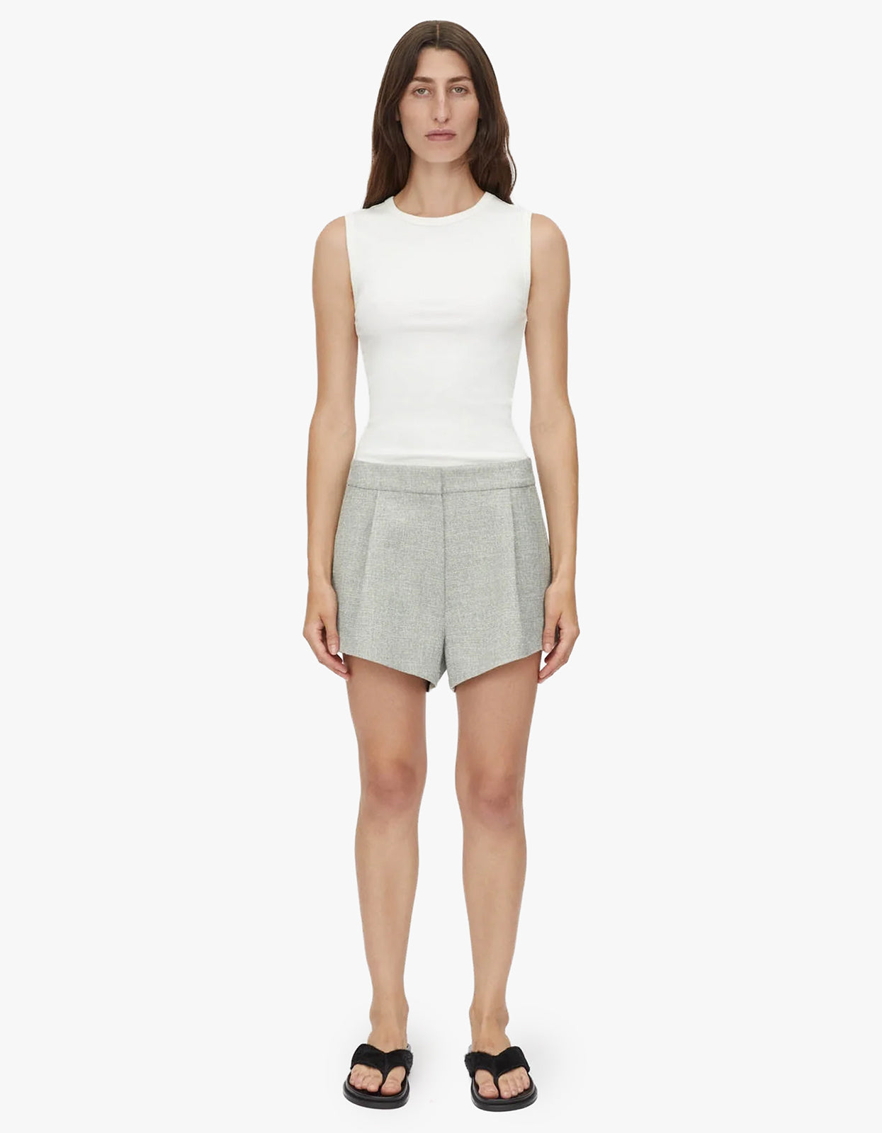 Featuring a streamlined fly front, side pockets, and a discreet blind hem, this short blends understated elegance with practical details for a polished look.