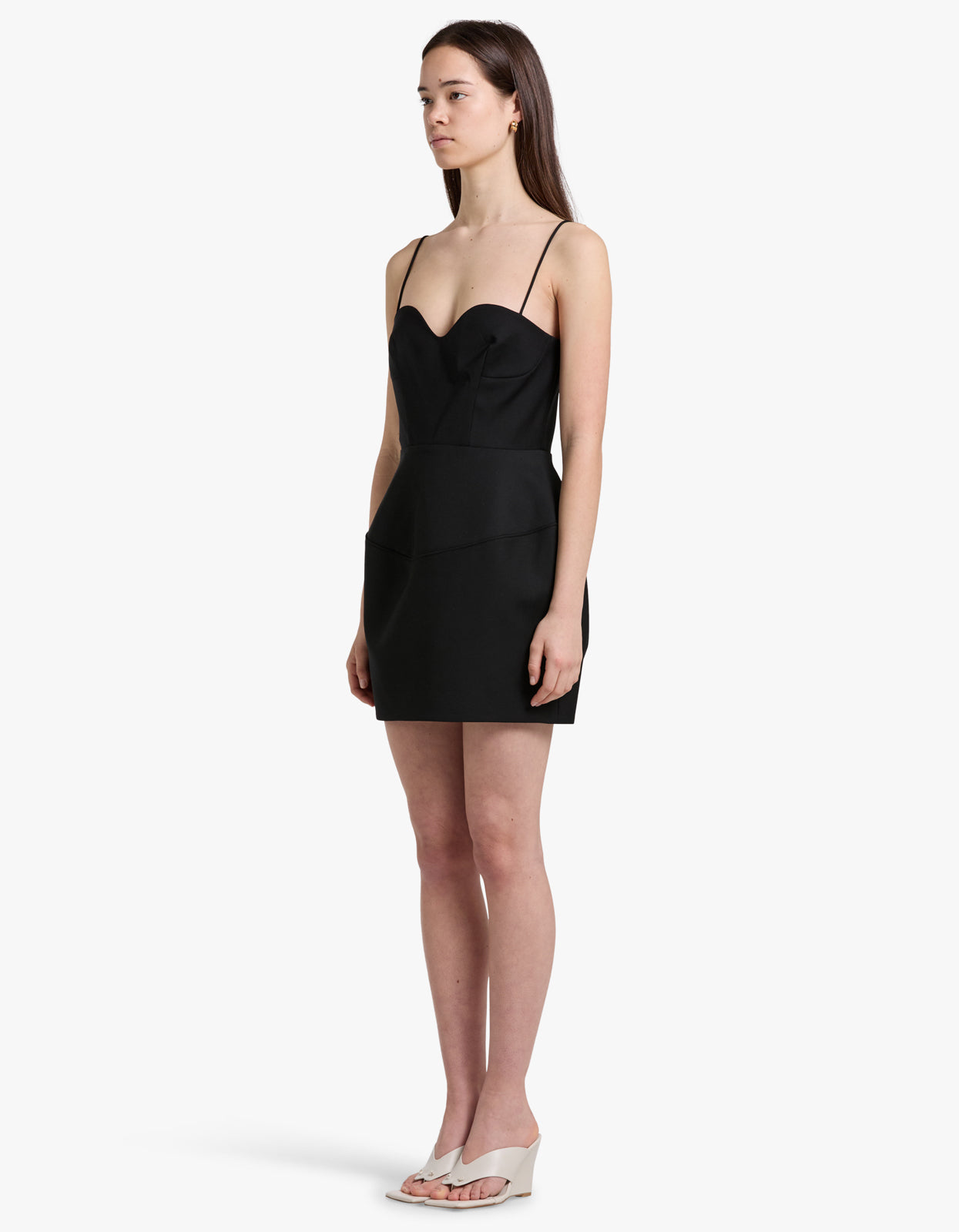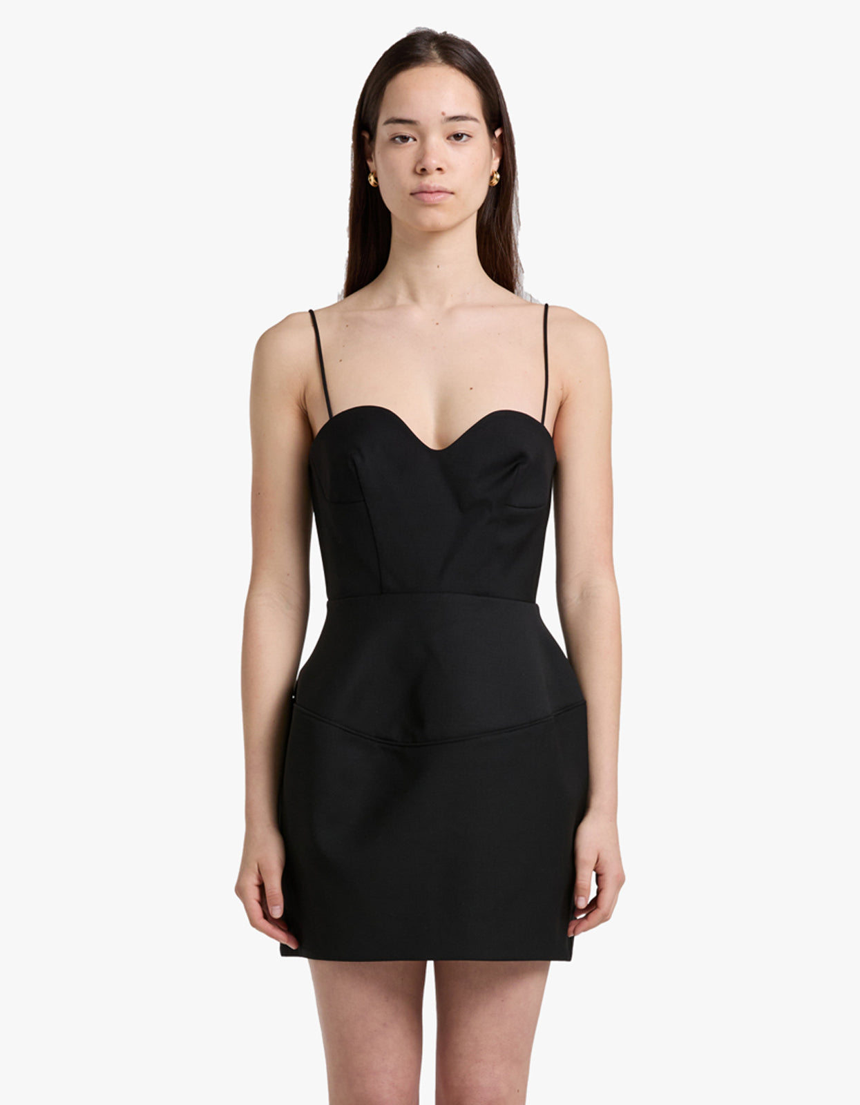 Discover the Camilla and Marc Doherty Peplum Mini Dress—a chic staple in your wardrobe! This little black dress features playful spaghetti straps and a flattering fitted heart-shaped bodice that enhances your silhouette.