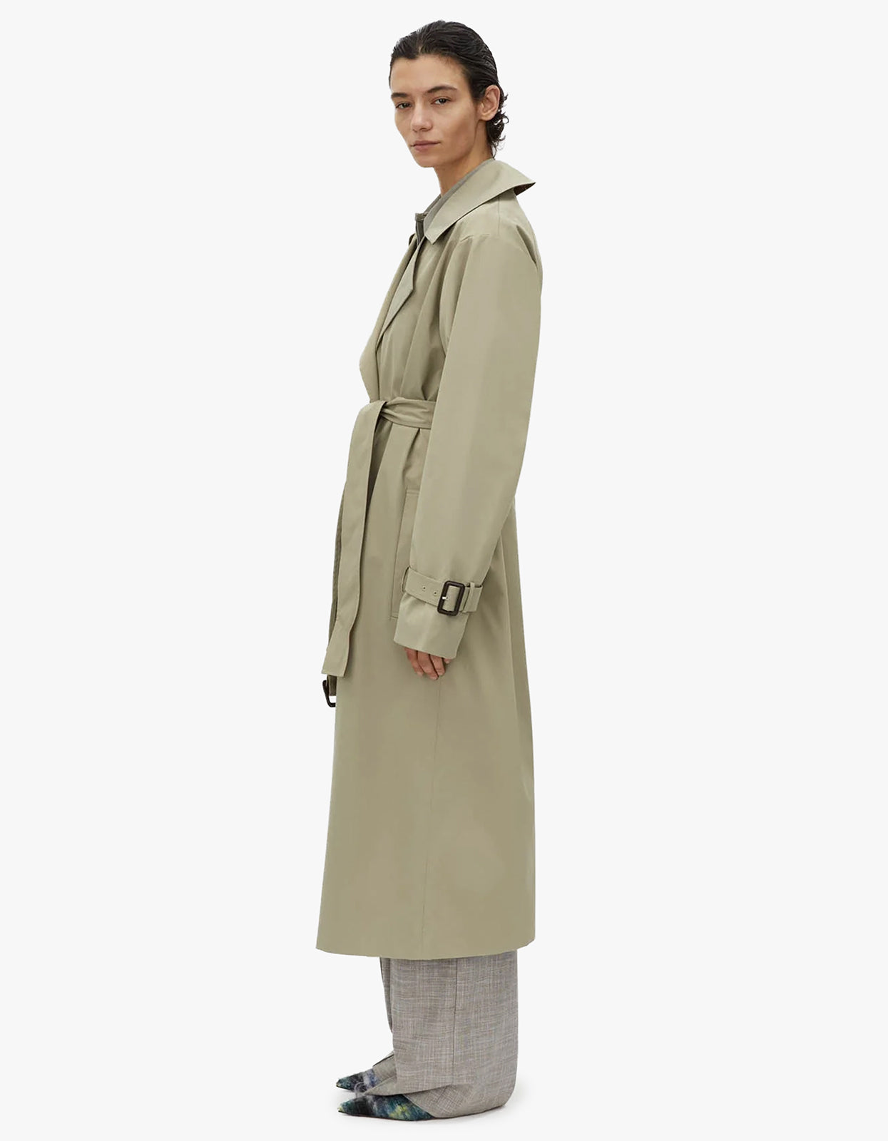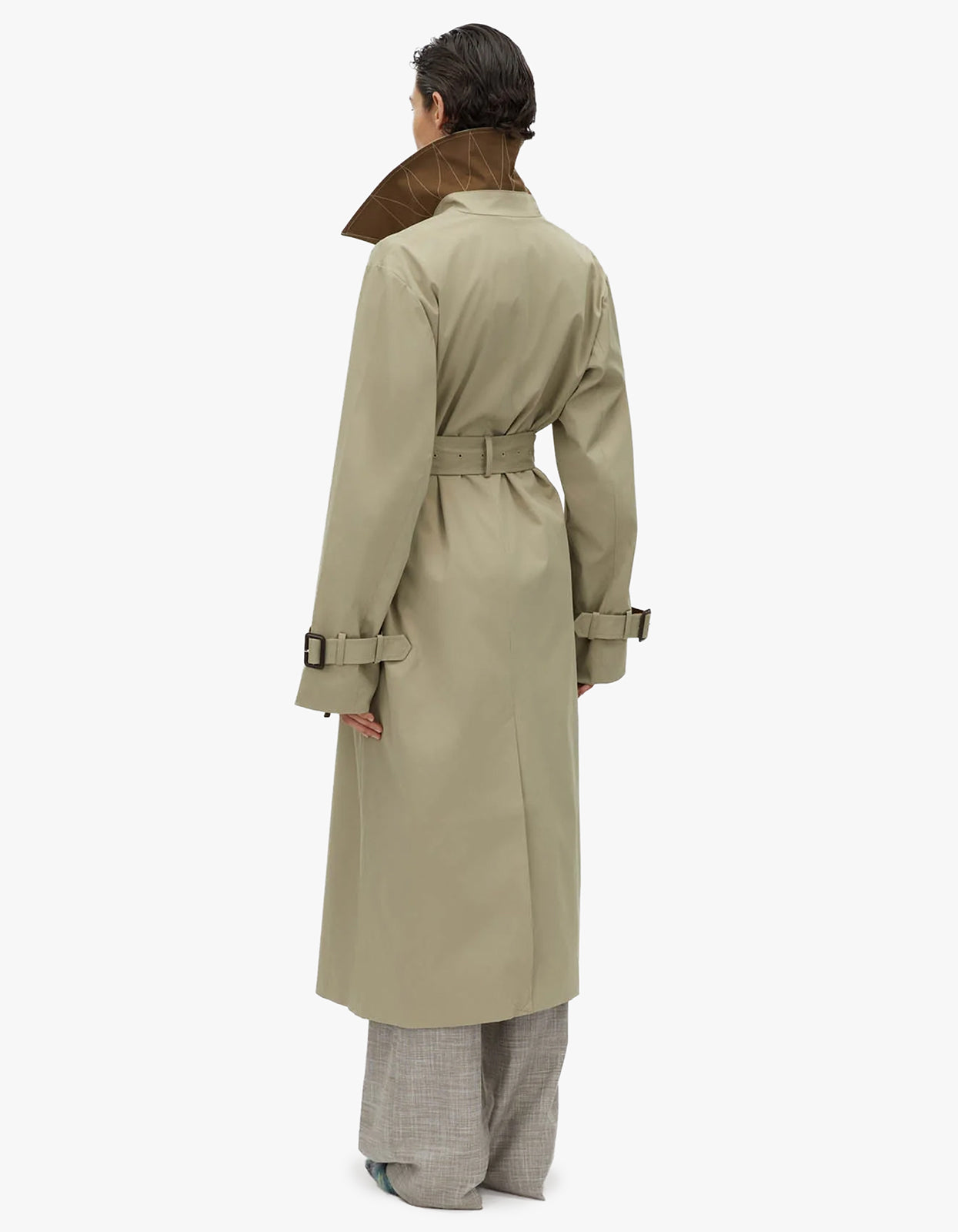 This luxurious trench coat flawlessly combines fashion and function, with impeccable design and craftsmanship. Elevate your style with this timeless piece, perfect for any occasion.