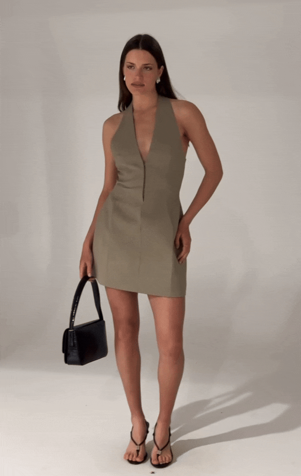 Turn heads in the Camilla and Marc Pompidou Halter Neck Mini Dress in Olive Marle.