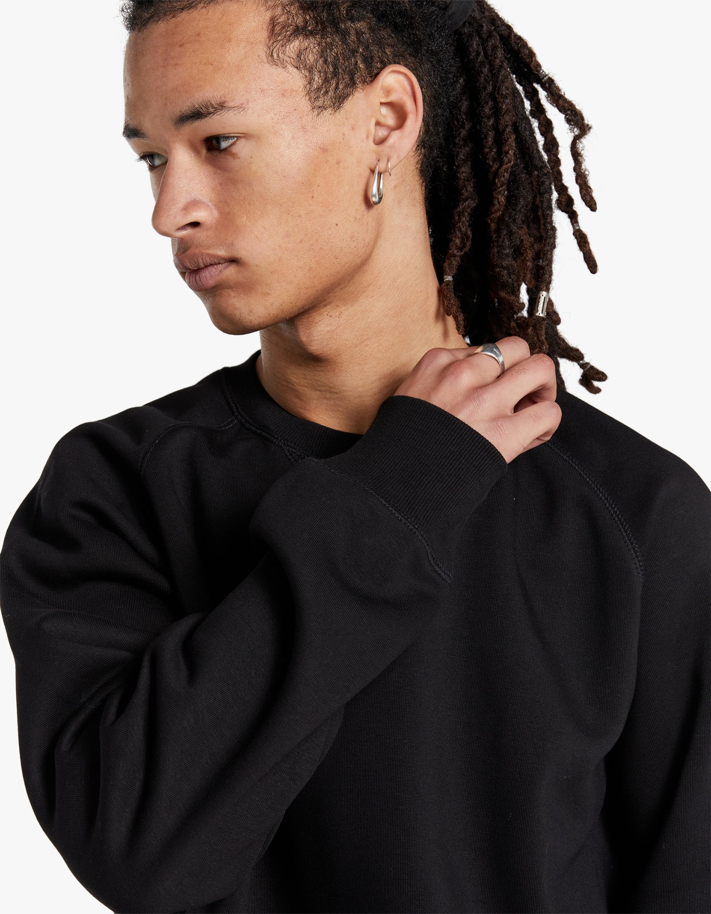 In fleece back jersey, this ribbed crew neck has a v-insert detailing and is subtly branded with an embroidered logo at the cuff. Sure to be a handy throw on this winter.