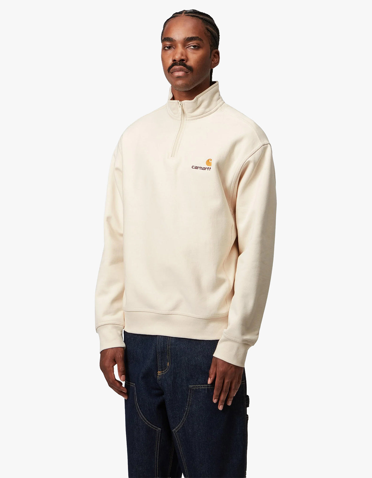 The Carhartt WIP Half Zip American Script Sweatshirt in Natural is your new go-to for effortless, laid-back style with a touch of heritage workwear credibility.