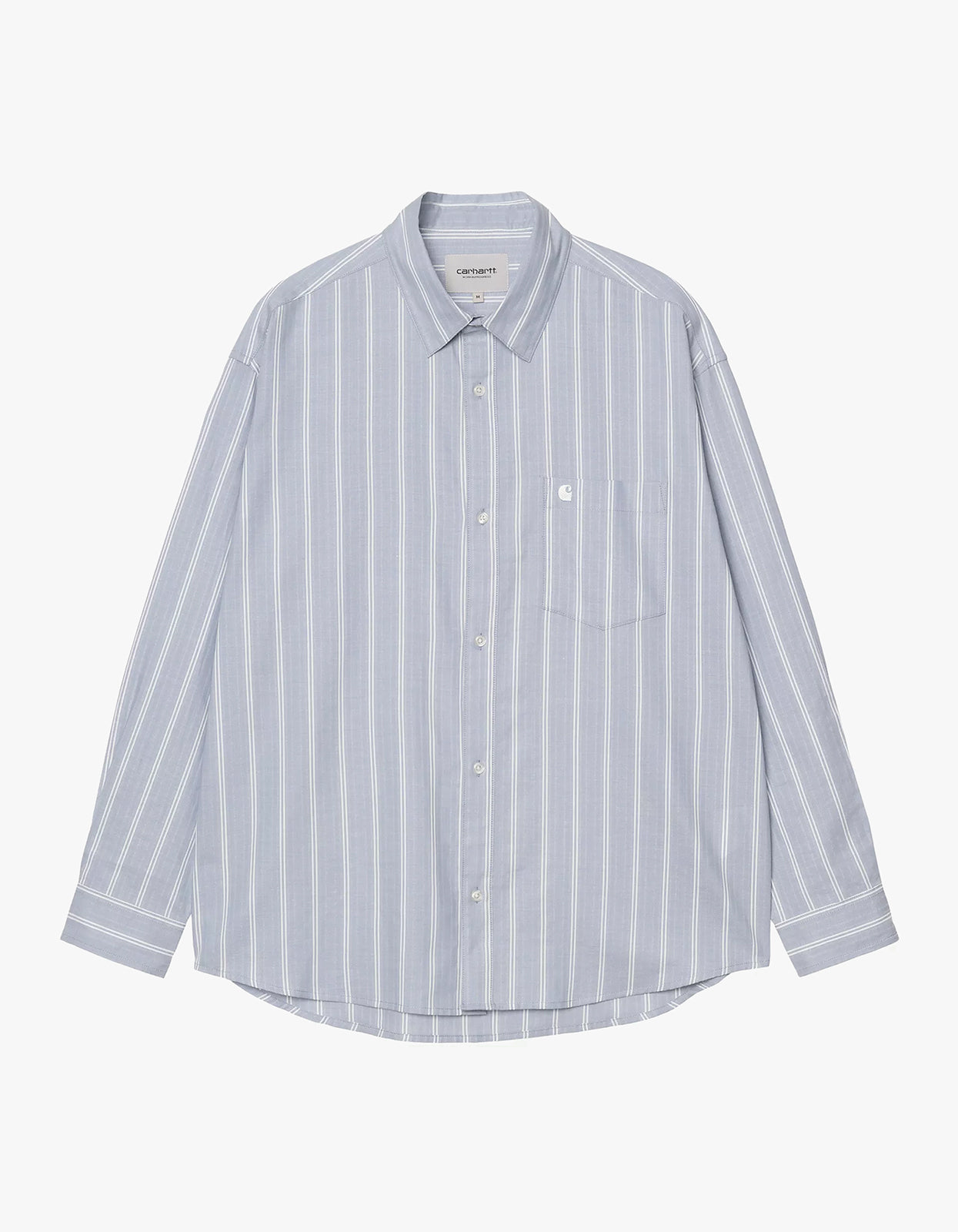 The Carhartt WIP L/S Beale Shirt in Beale Stripe brings effortless summer style with its gentle blue and white stripes. Crafted from lightweight, textured dobby cotton, this shirt has that relaxed, breathable feel that's perfect for warmer days.