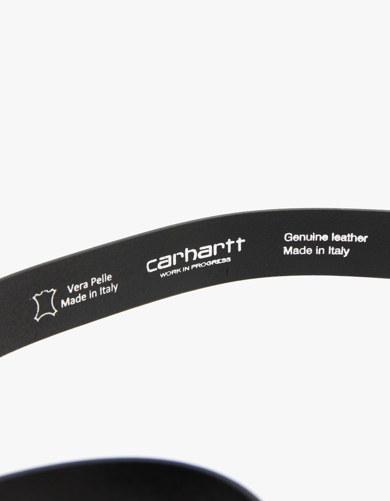 Crafted from leather exhibiting refined and sleek style - The Ryan Belt is the best and easiest way to polish off your look. Featuring a debossed Carhartt script logo on the belt loop, with a blacked out metal buckle. High quality, high function, and high style.
