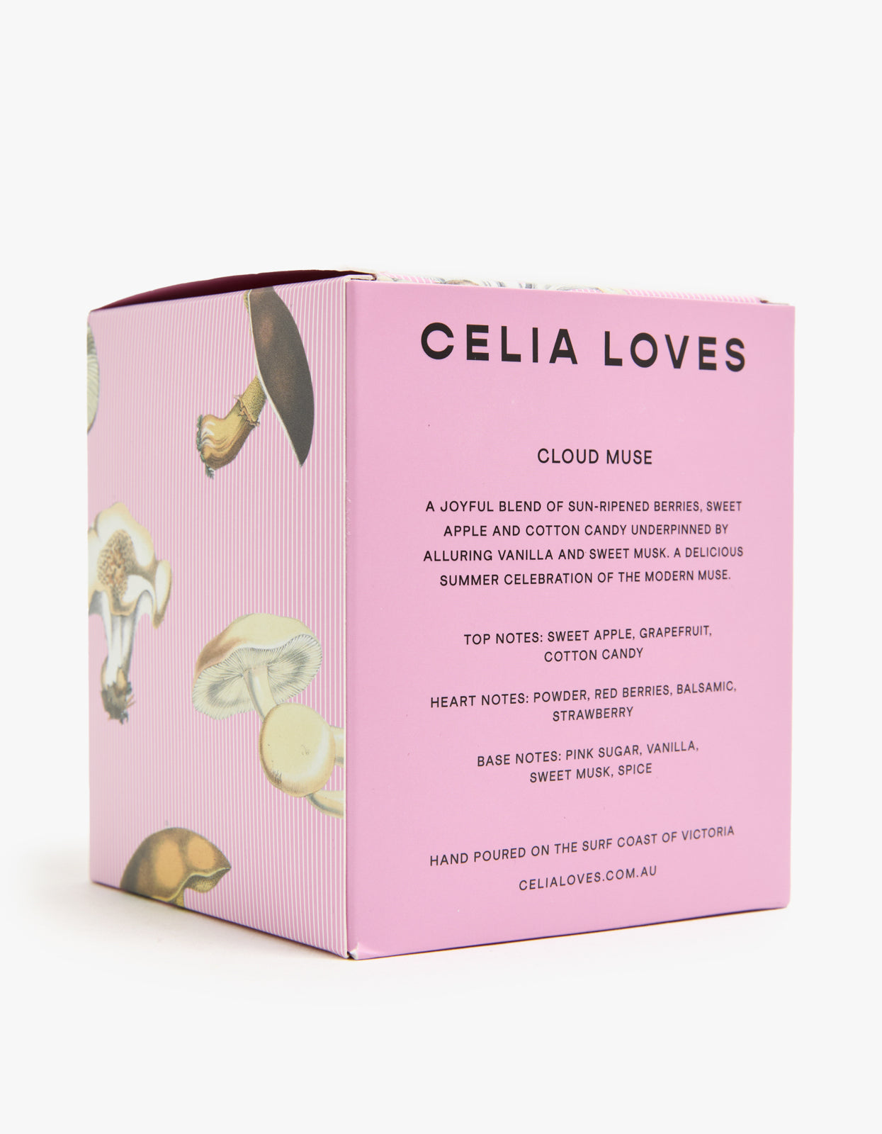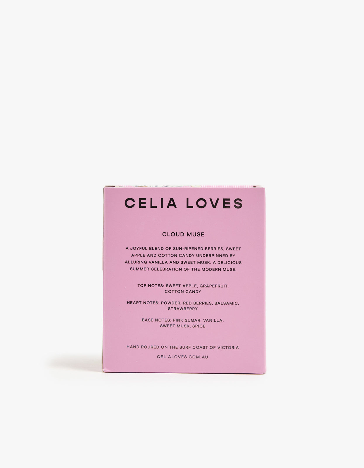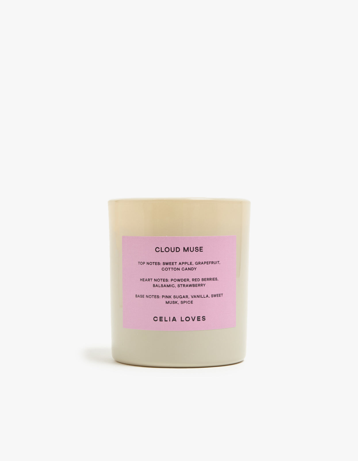 Indulge in the luxurious scents of Celia Loves Cloud Muse 80H Candle. This joyful blend of sun-ripened berries, sweet apple, and cotton candy is underpinned by alluring vanilla and sweet musk.