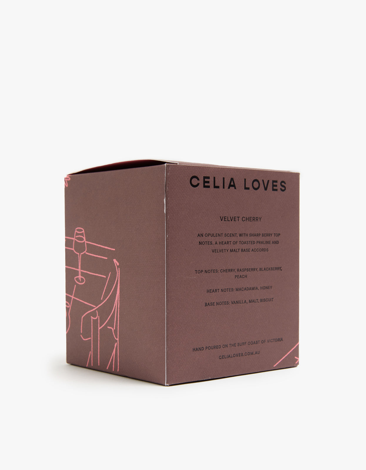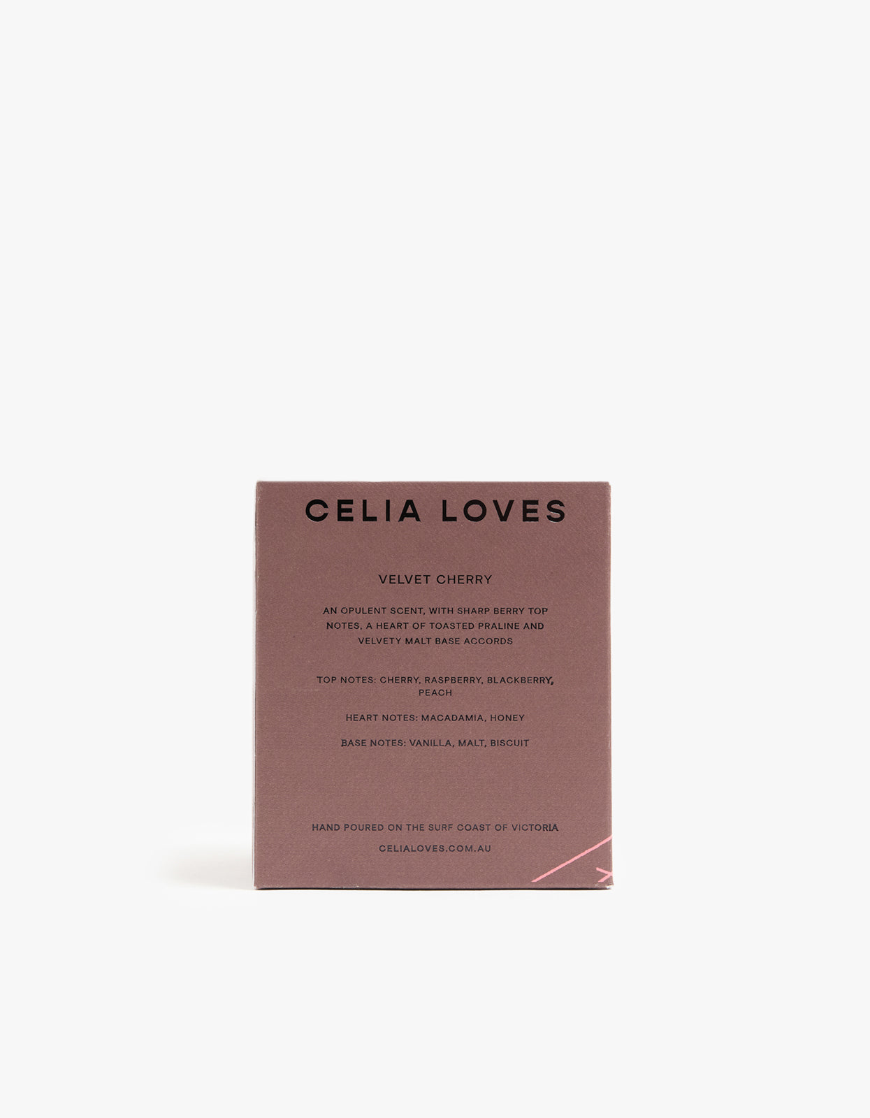 Enhance the ambiance of your home with Celia Loves' luxurious Velvet Cherry 80H Candle.