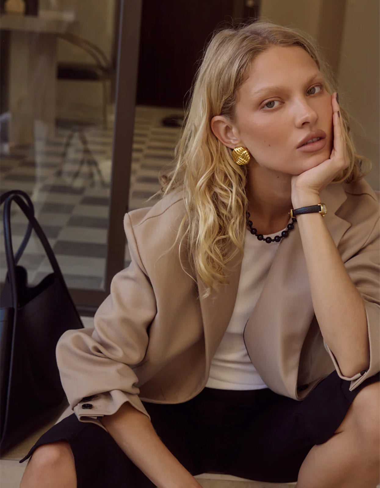 The Constance Necklace by Cendré combines bold textures with understated refinement, drawing inspiration from Art Deco design.