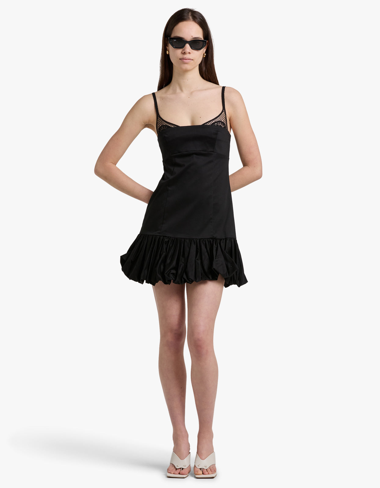 With its flattering black color and flowy silhouette, this dress is perfect for any occasion. Embrace your inner fashionista and make a statement with the Daisy Mini Dress.