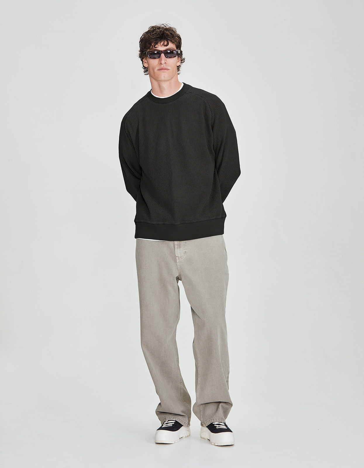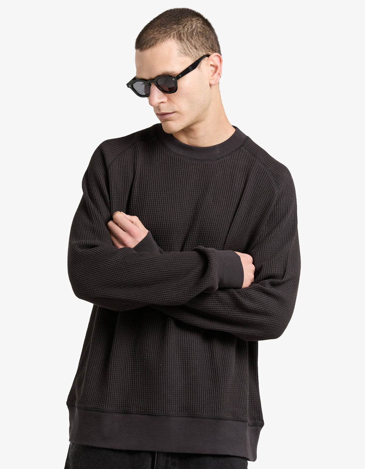 Crafted from high-quality waffle fabric, this long-sleeved tee offers both style and comfort. The vintage black color adds a touch of sophistication to your wardrobe. Elevate your everyday look with this exclusive piece.