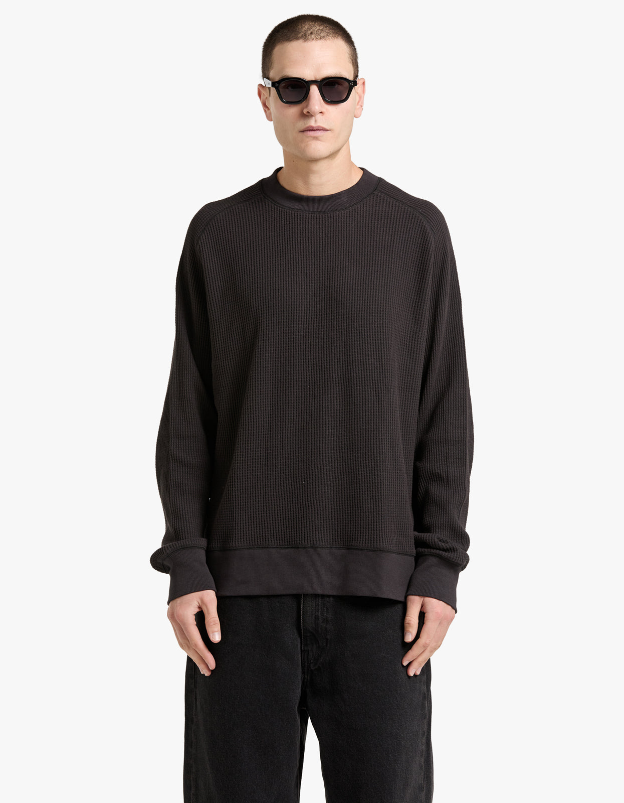 Indulge in luxury with the Commoners Mens Heavy Waffle L/S Tee in Vintage Black.