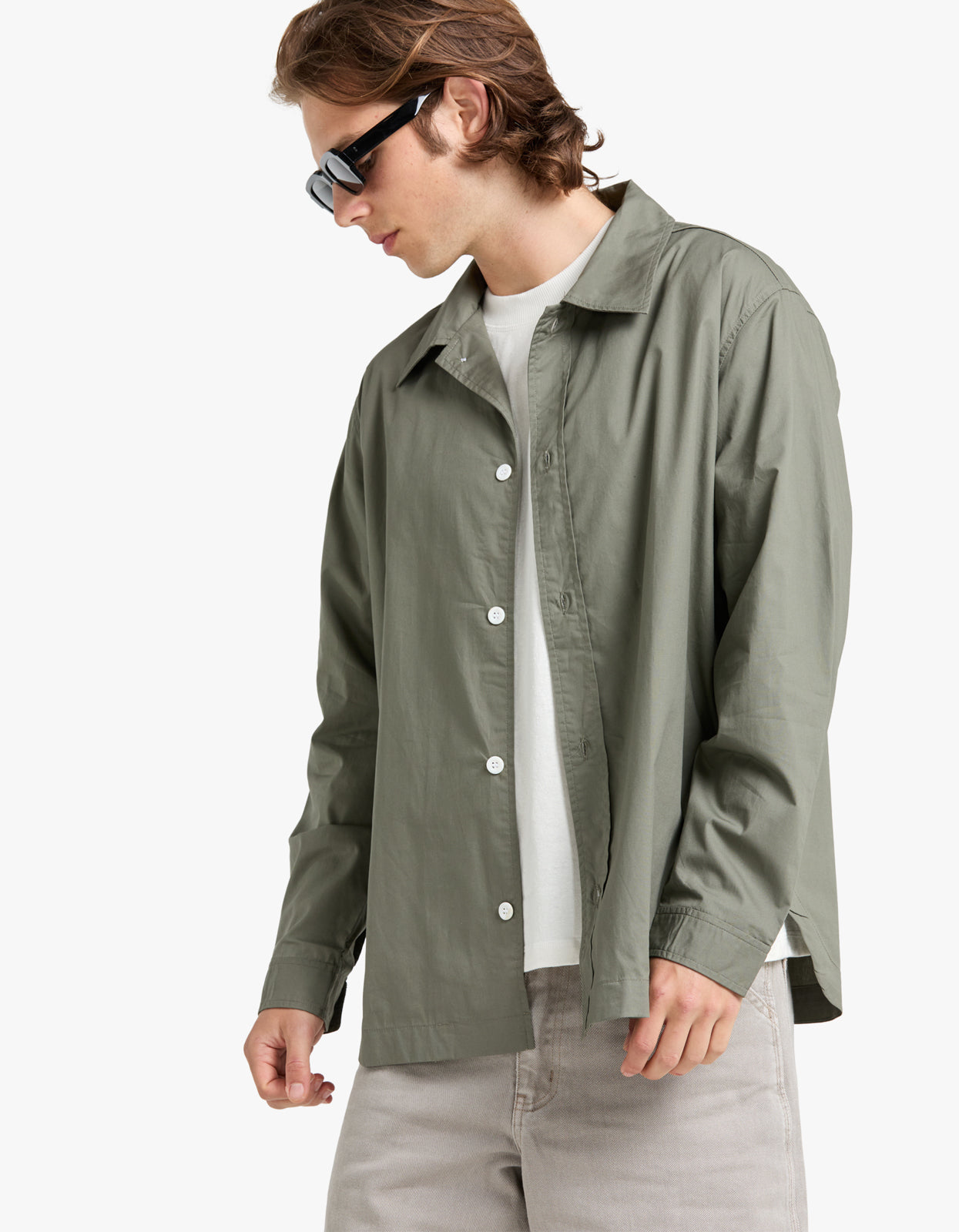 Mens Relaxed Fit L/S Poplin Shirt - Olive