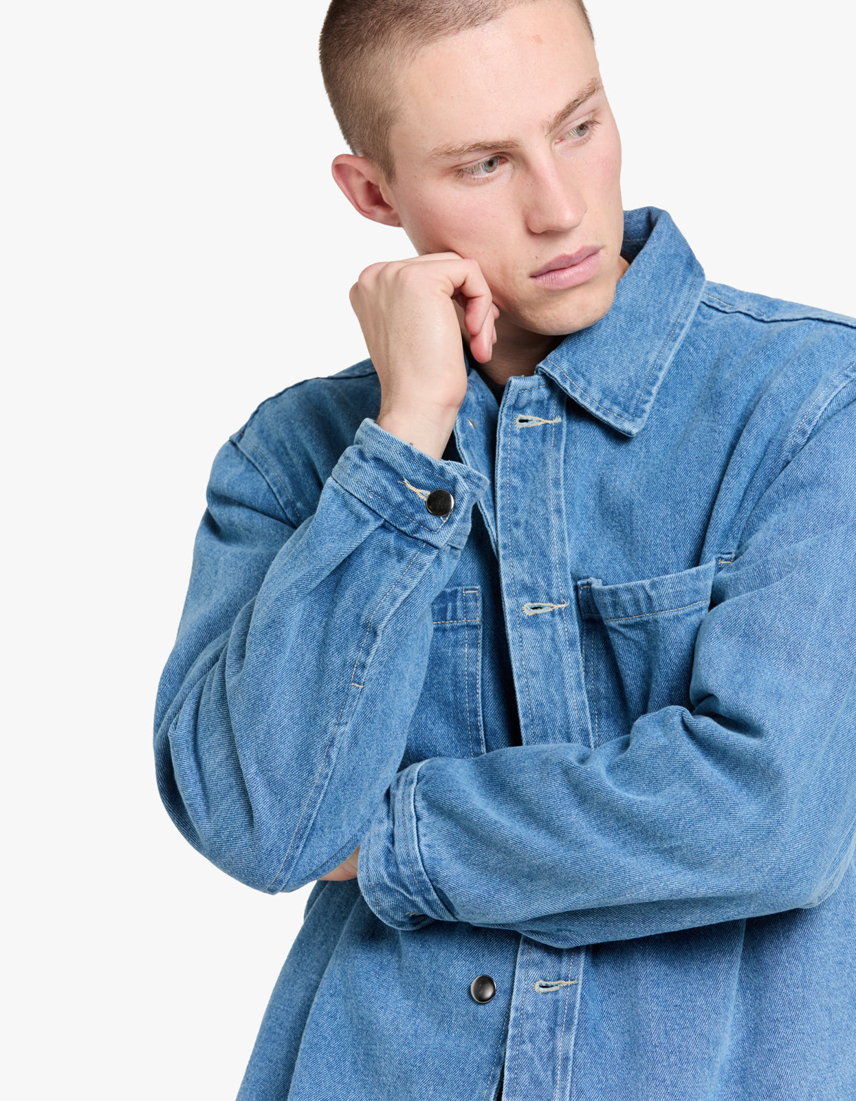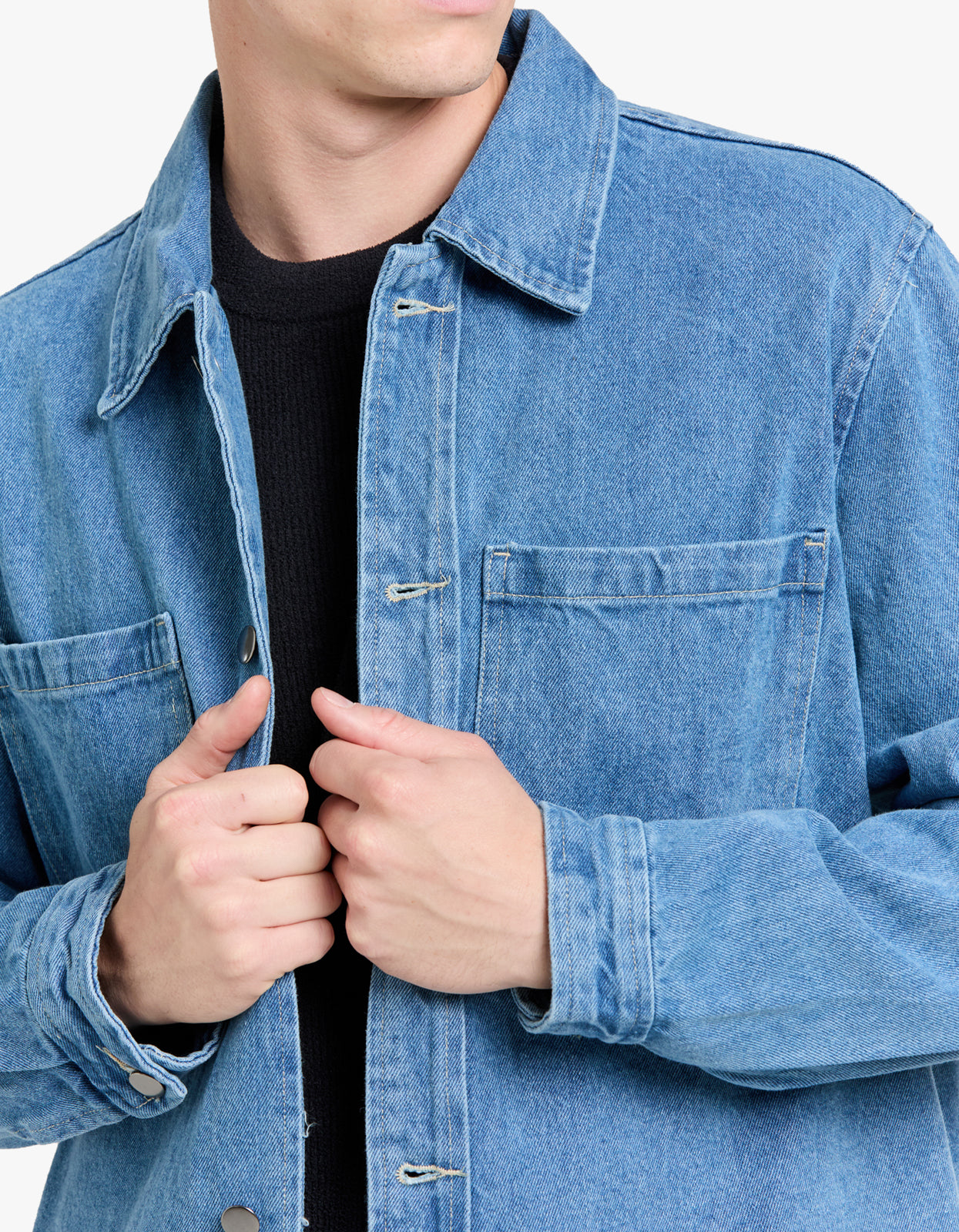 This unique shacket is both a shirt and jacket, providing versatility for any occasion. Pigment dyed for a vintage look, add a touch of edge to your wardrobe.