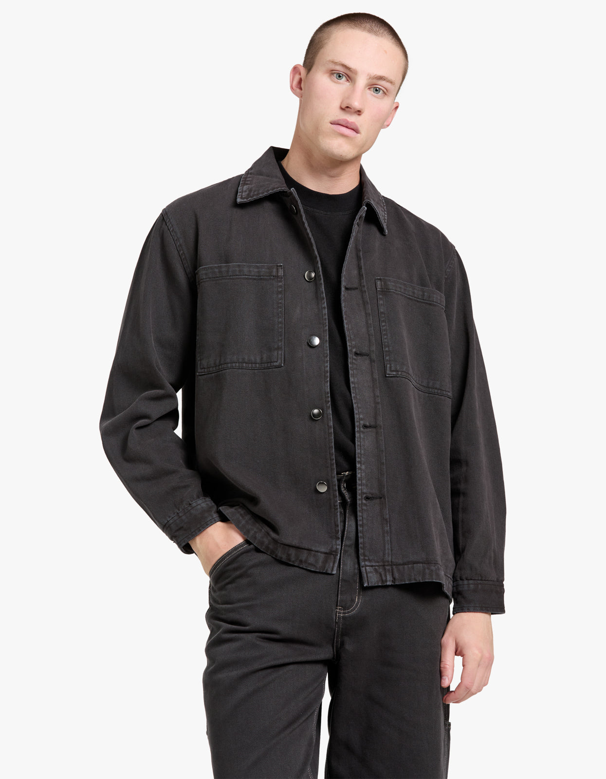 Stay stylish and comfortable with our Mens Utilty Shacket in Vintage Black from Commoners.