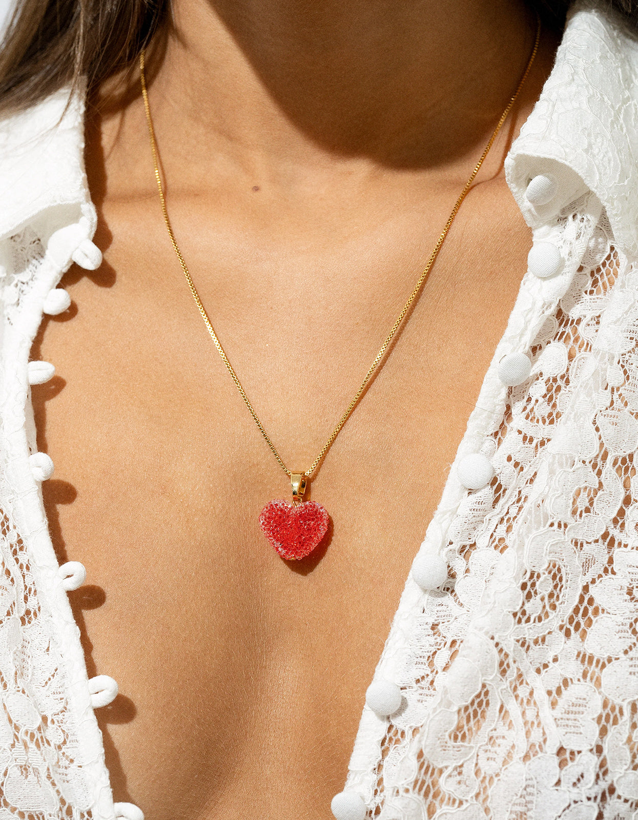 Get nostalgic with our Jelly Heart Pendant in watermelon hue from Crystal Haze.
