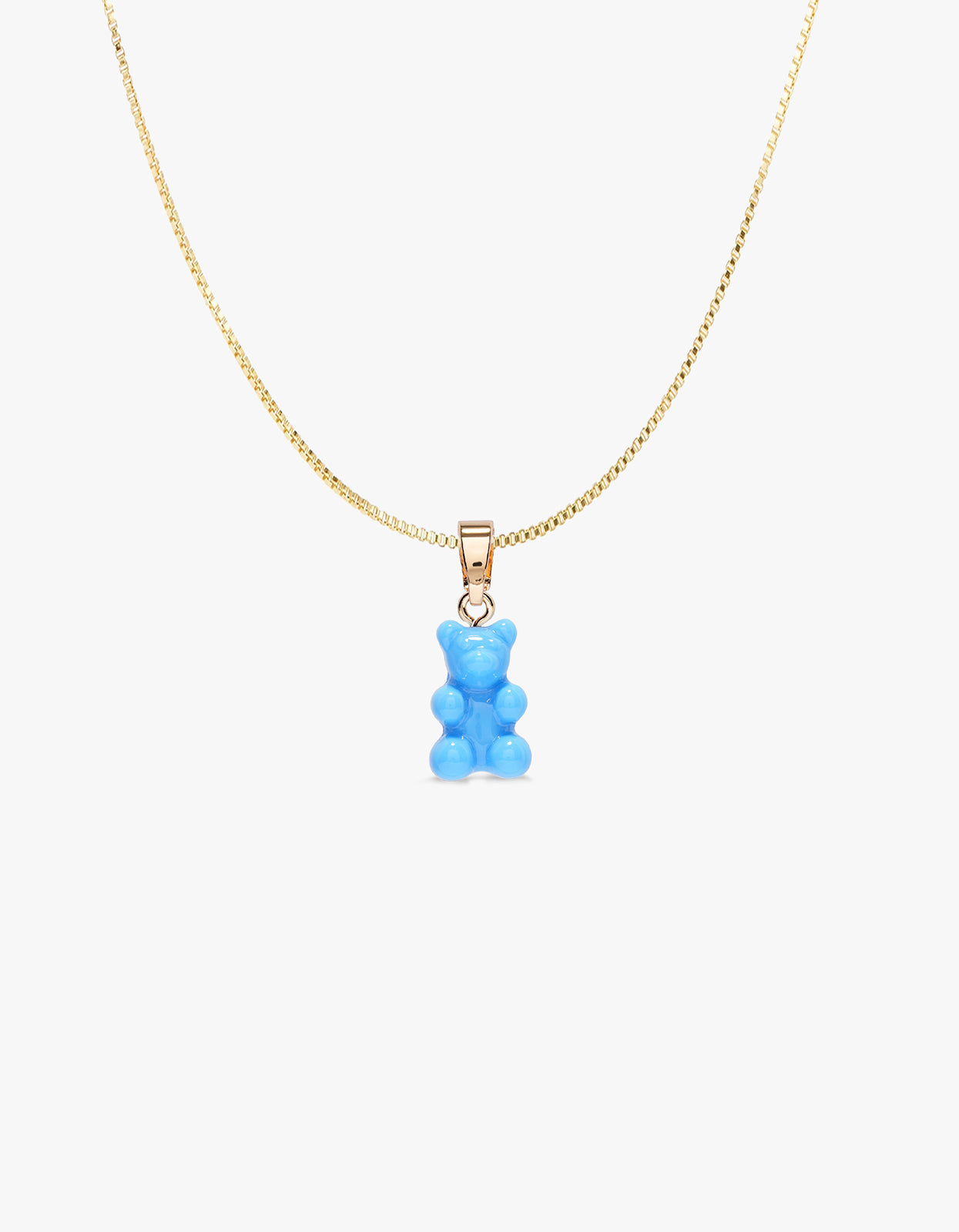 Recapture the magic of the 90s with the Nostalgia Bear Gold Chain Necklace in Sky Blue from Crystal Haze.