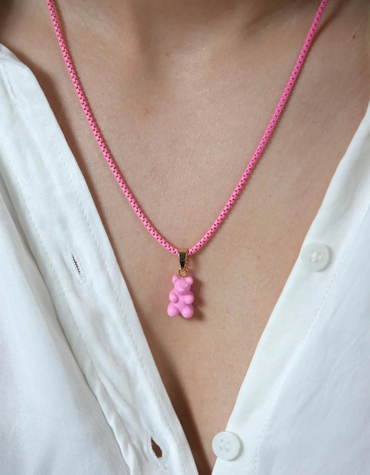 Add a pop of fun and colour to your wardrobe with Plastalina Chain in Candy Pink from Crystal Haze.
