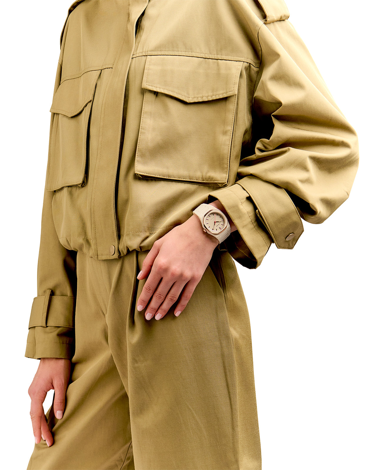 Meet your new monochromatic taupe icon: the Polycarbon 37mm Watch from D1 Milano.