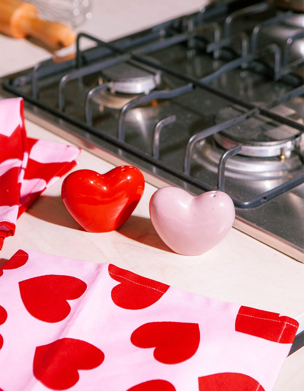 Elevate your dining experience with these elegant ceramic salt and pepper shakers from DOIY, gracefully shaped as twin hearts in rich red and soft pink tones.