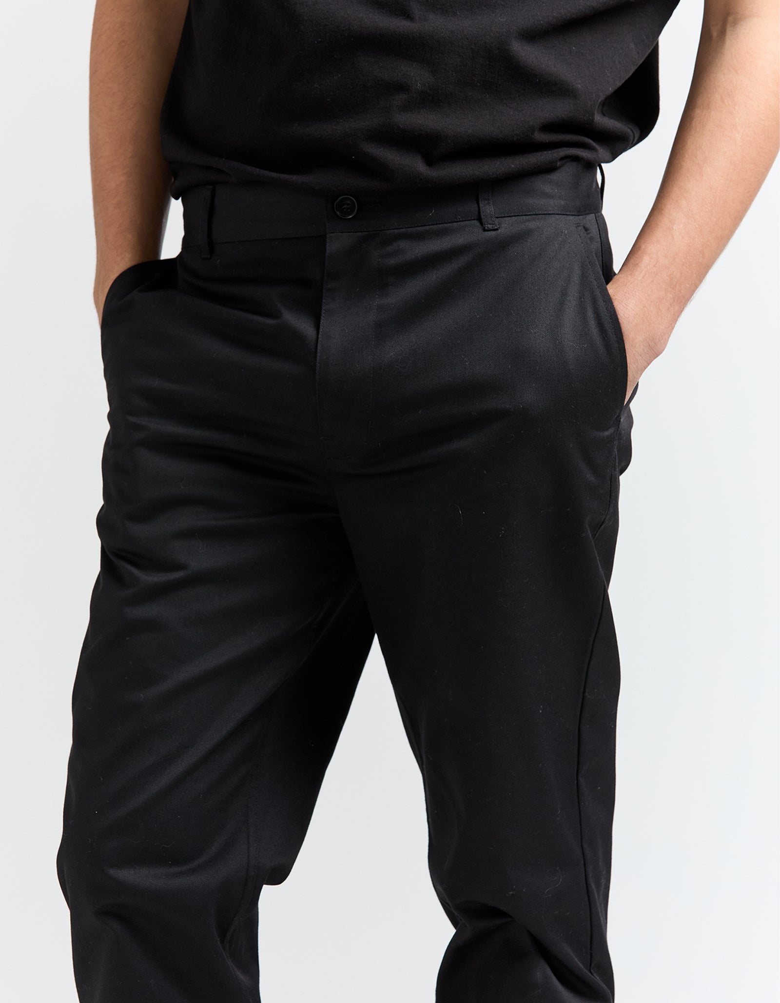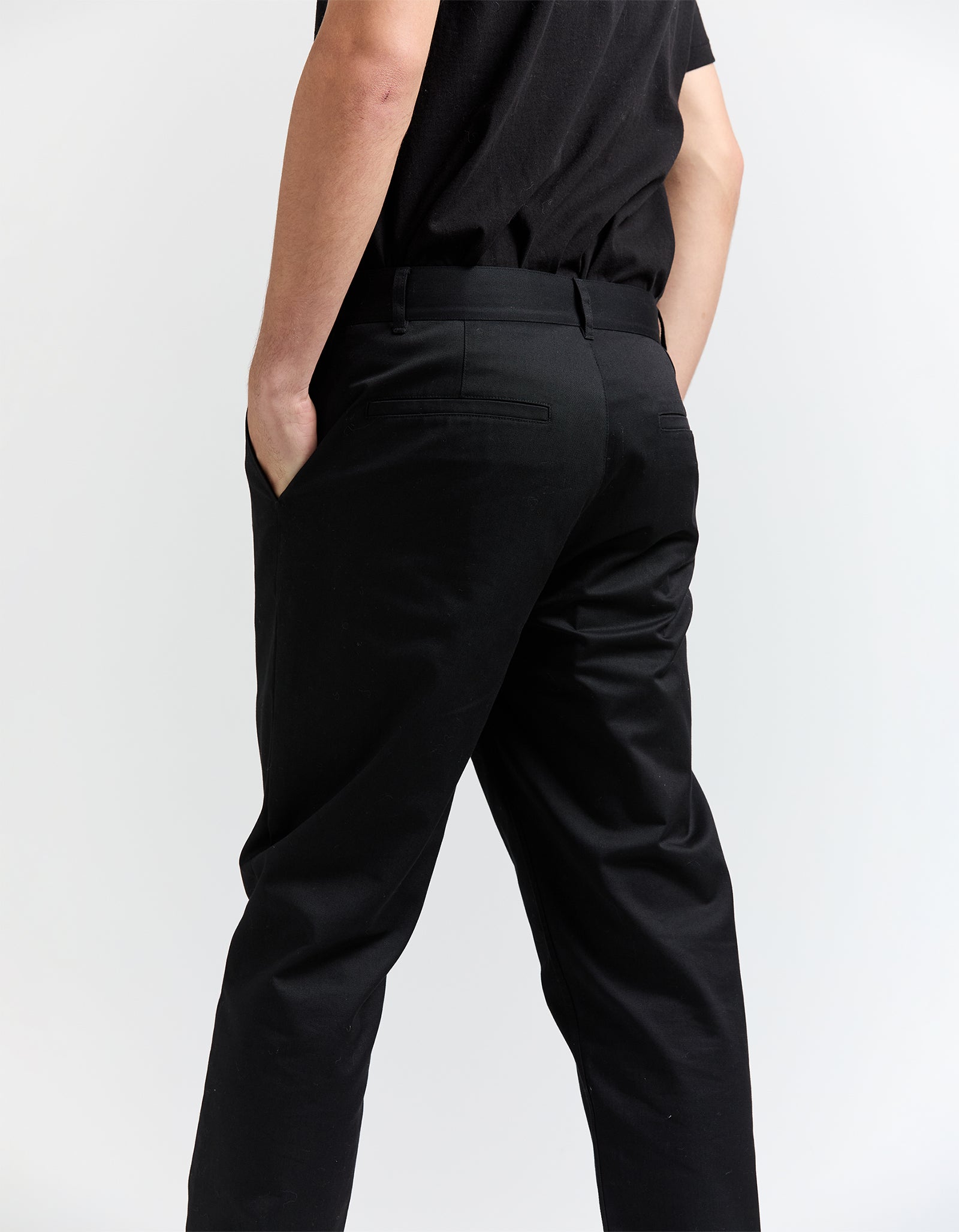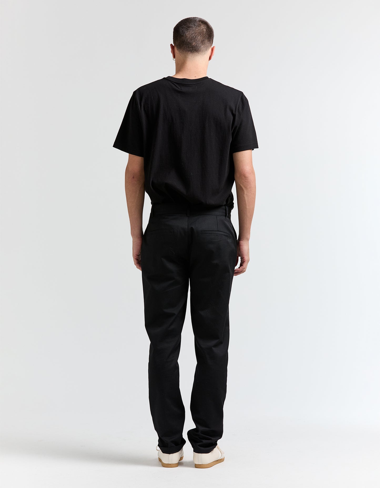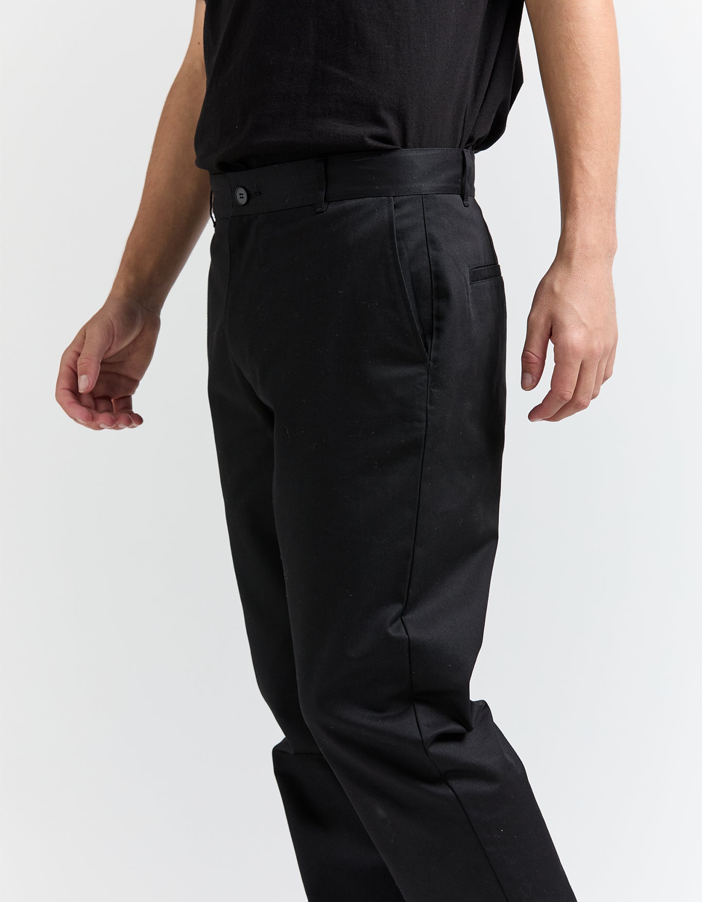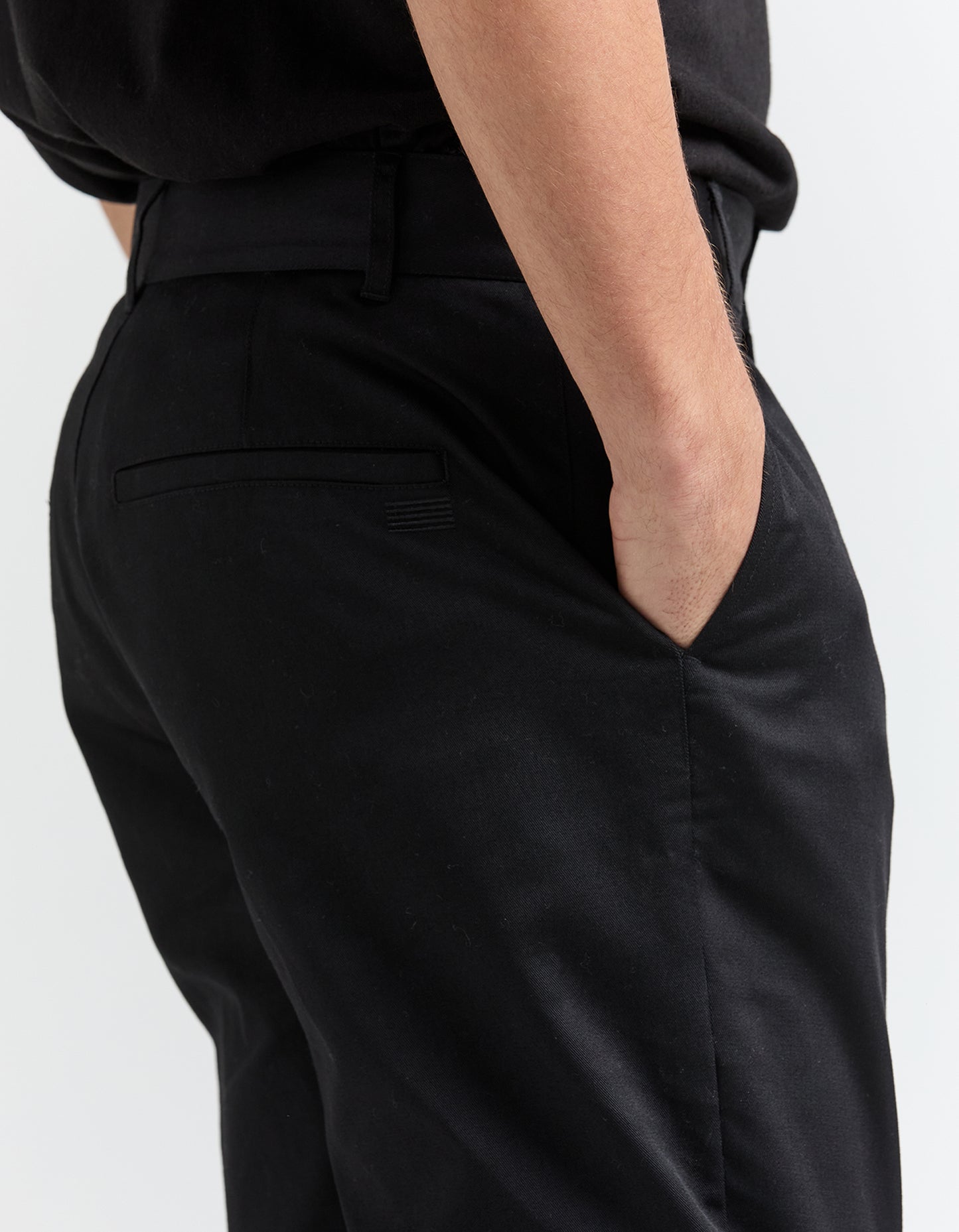 An occasional classic - the Batalla Pant from Drake Street is a staple chino silhouette cut from a black cotton blend base, is complete with a straight leg, zip fly and button closure with welt pockets at the back. Simply pair with a fresh white tee or a button-down shirt ahead of your next day or night event.