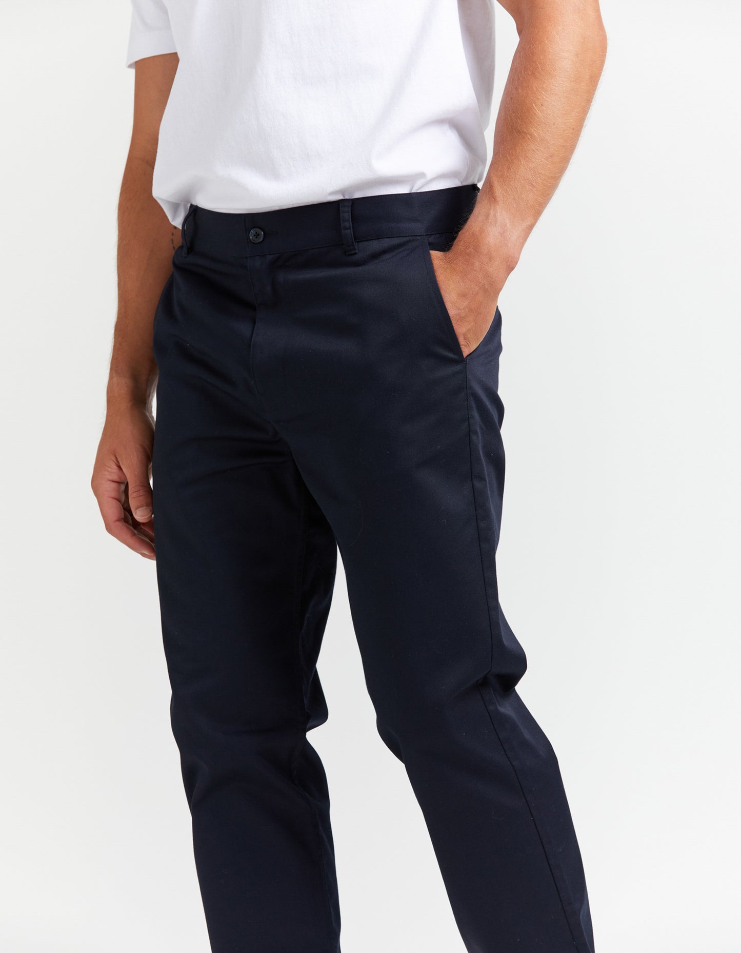 An occasional classic - the Batalla Pant from Drake Street is a staple chino silhouette cut from a navy cotton blend base, is complete with a straight leg, zip fly and button closure with welt pockets at the back. Simply pair with a fresh white tee or a button-down shirt ahead of your next day or night event.