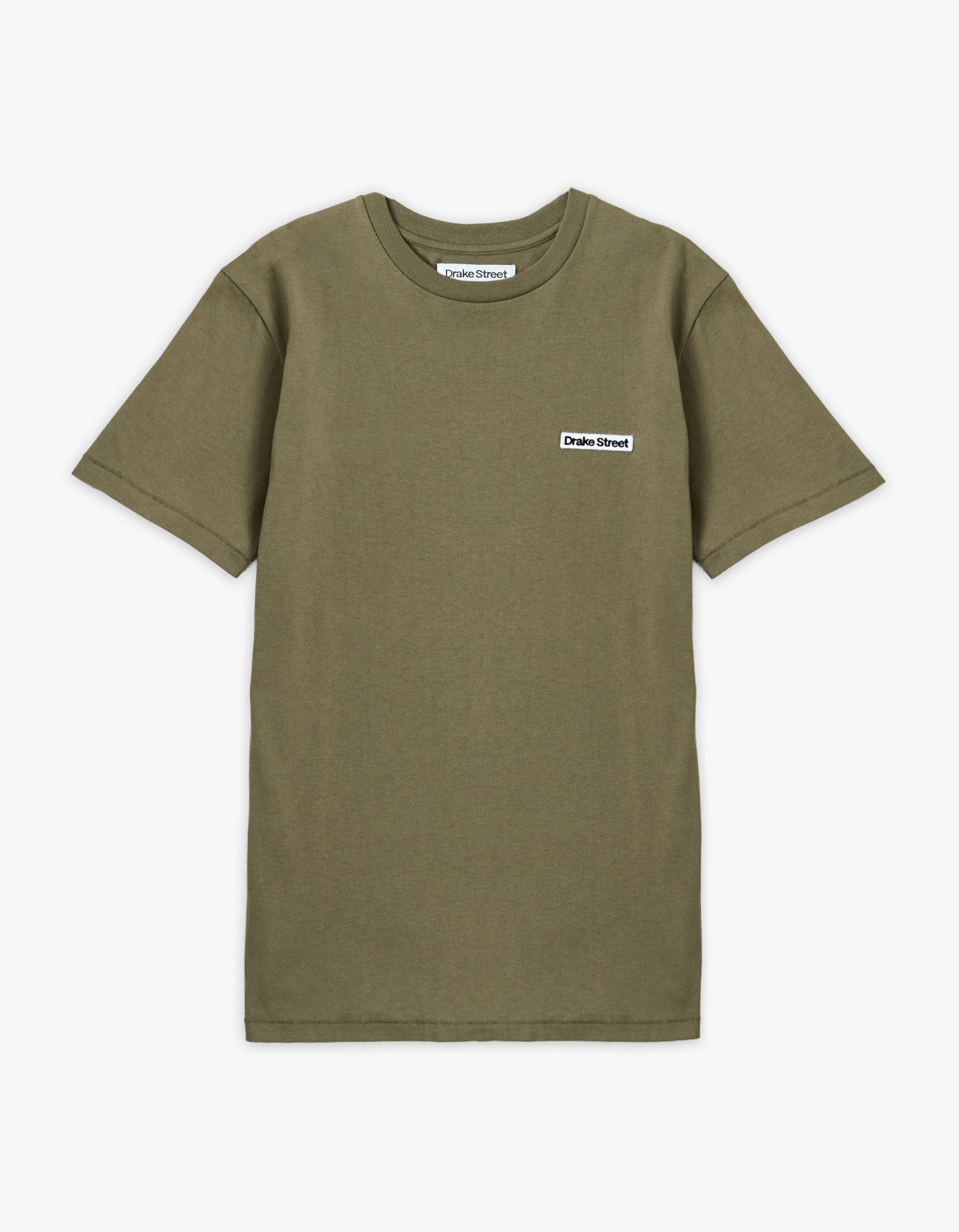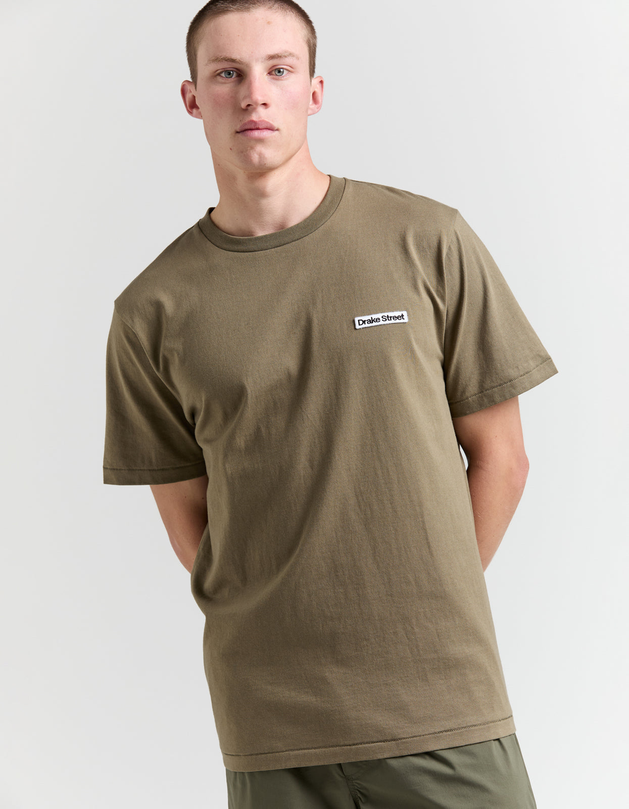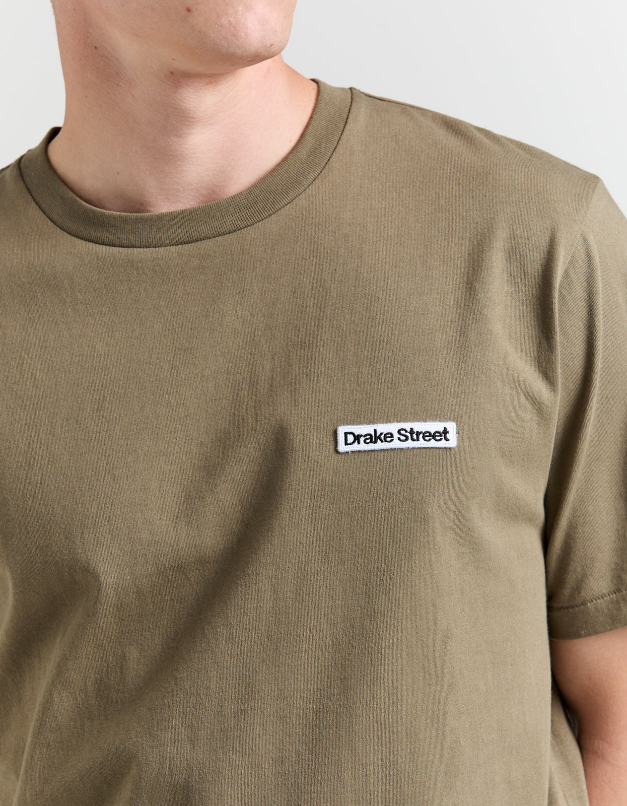 Introducing the luxurious Crossman Tee in Khaki. This elevated piece features a branded patch and a fit that perfectly resembles the Drake Street Phoenix tee.