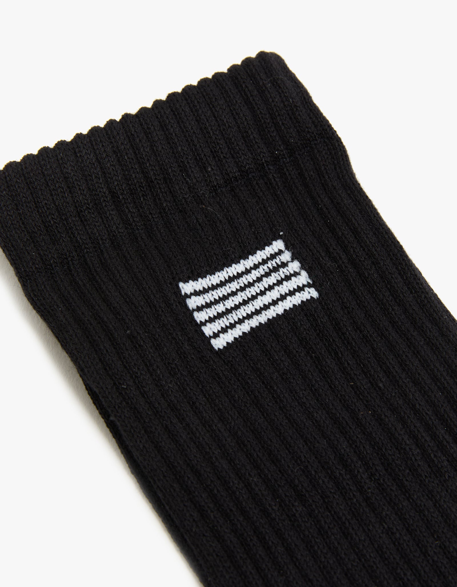 Previously seen in white this ribbed much loved classic is back. Featuring a sleek graphic script and design up the top and side adds more to your look than the classic sock.