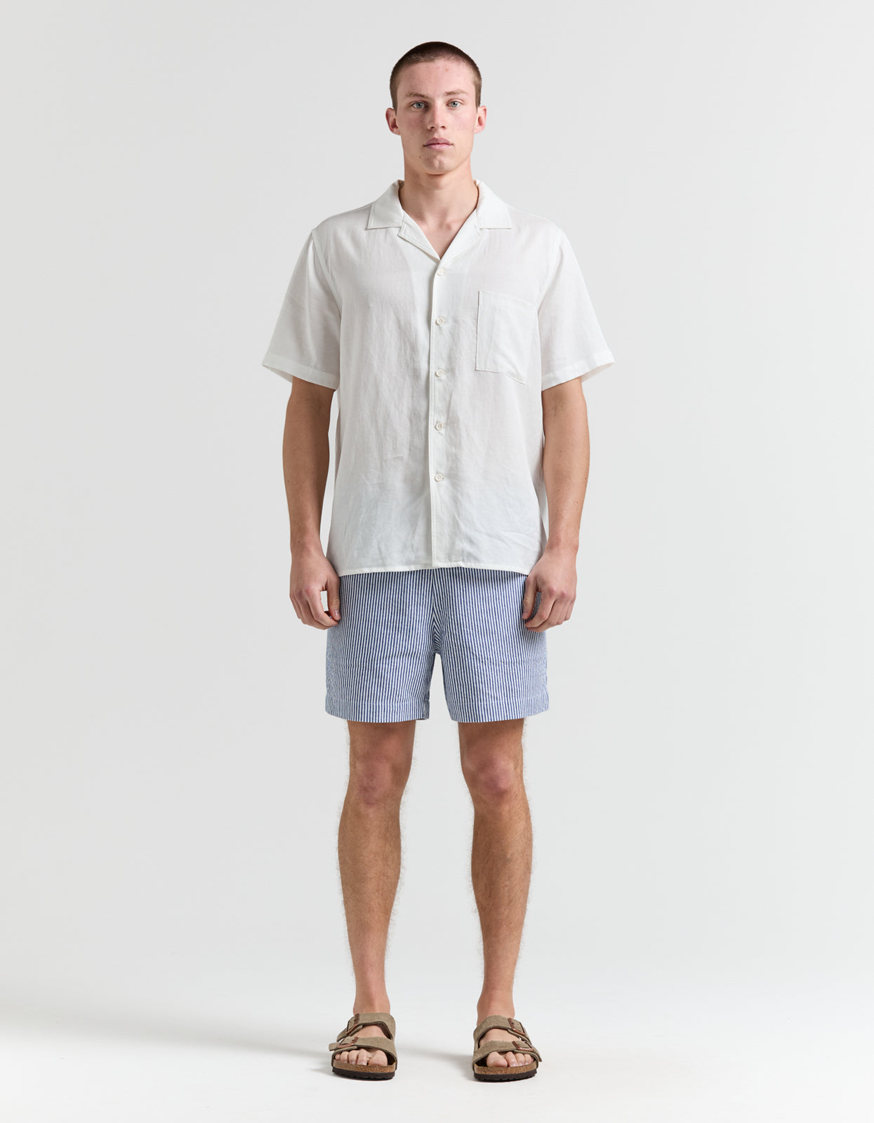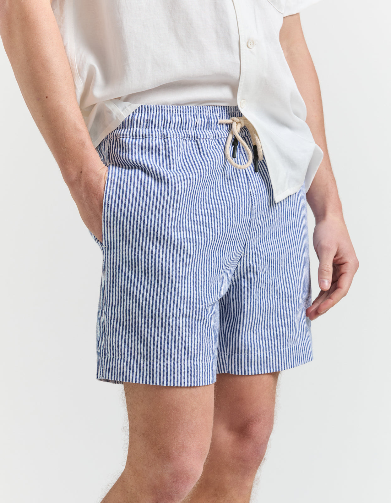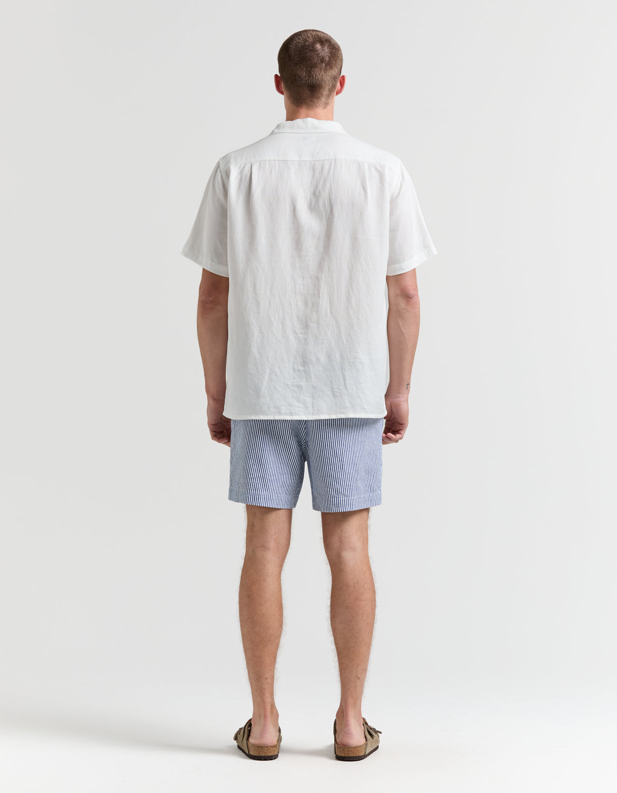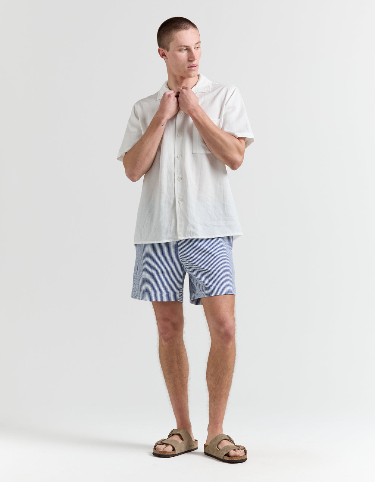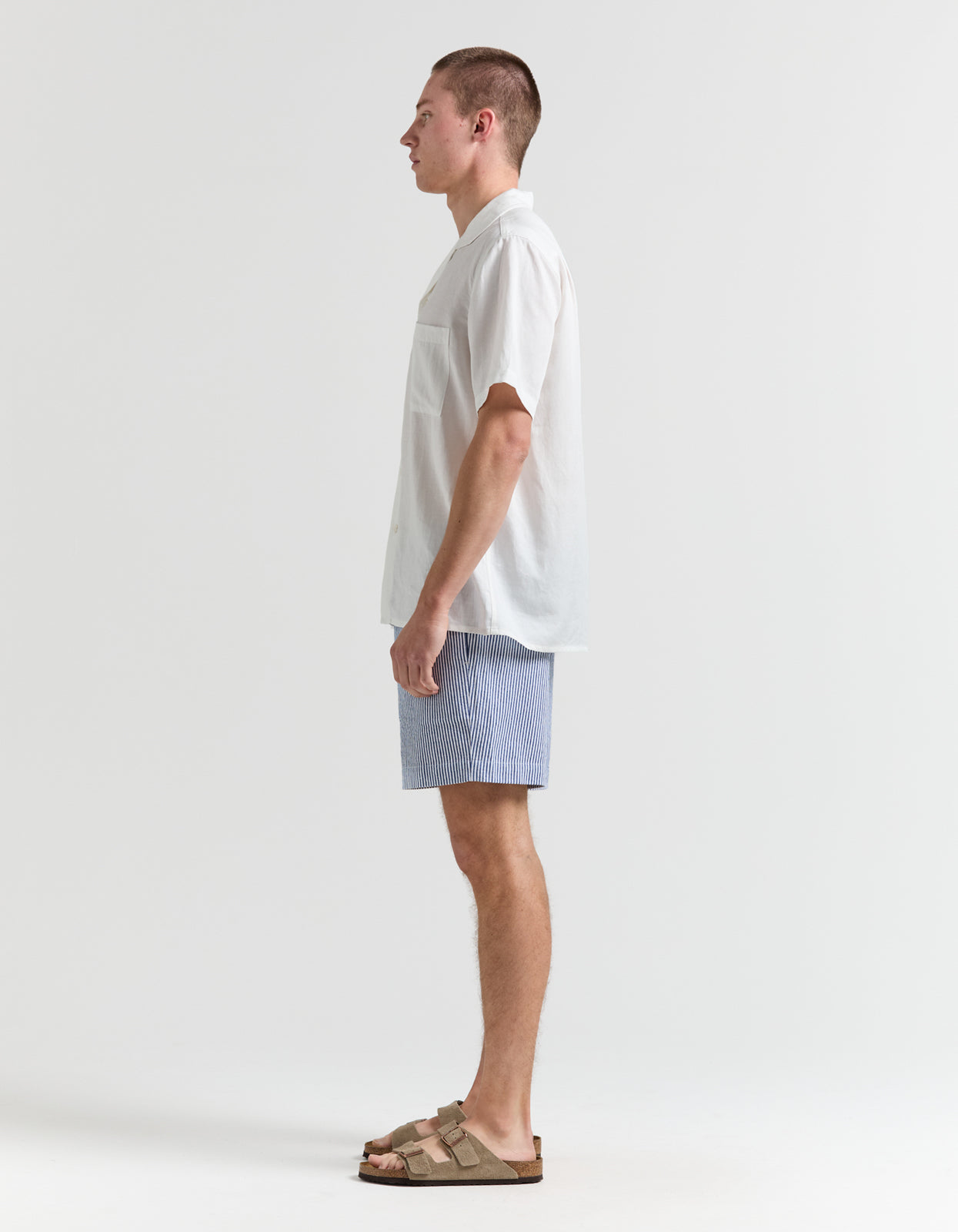 Made from a lightweight cotton base, the Fresno Short features an elasticated waistband with ivory drawcord detailing and side pockets. Complete with the signature louver design embroidered at the back, keep it fresh ahead of the warmer days with this blue and white pinstripe number.