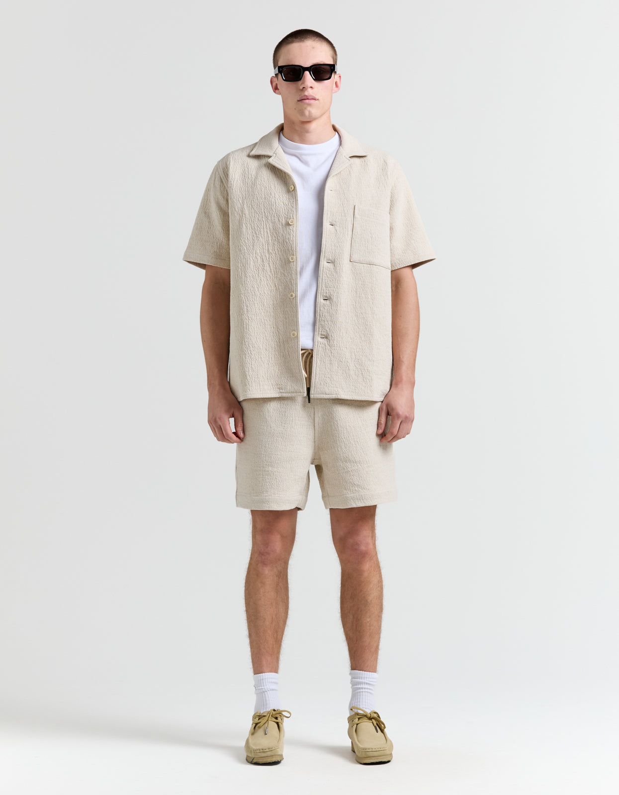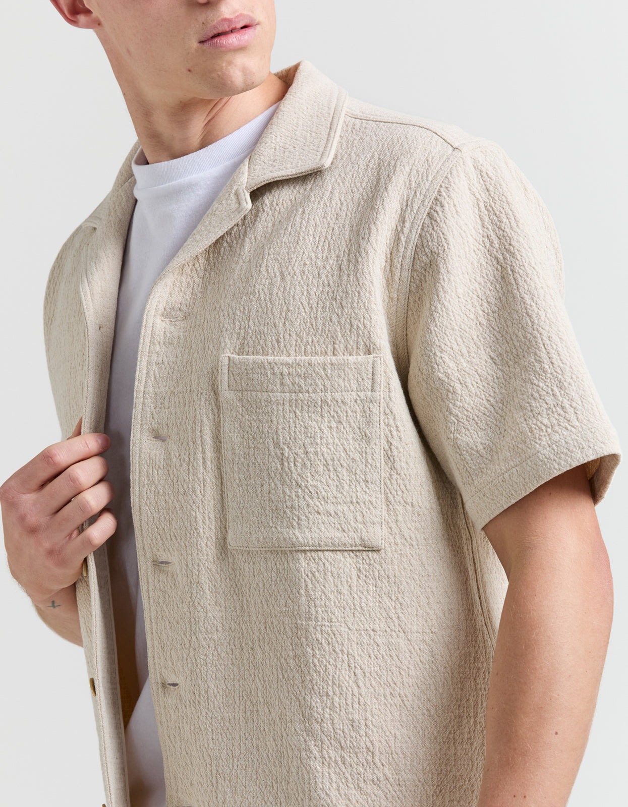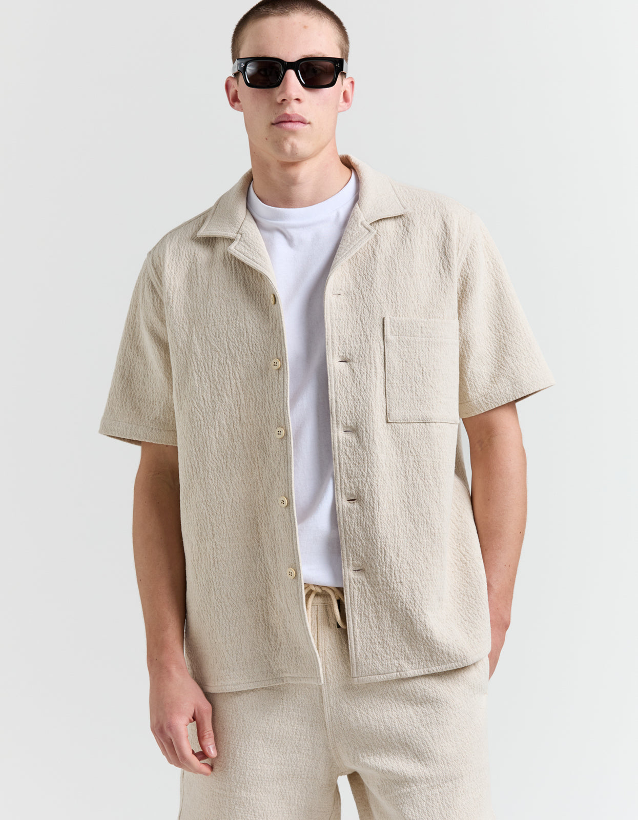 Its versatile design features a button-up front for a classic look or unbutton for a trendy over shirt style. Made from a linen blend, its natural color is perfect for pairing with the matching Julio Linen Blend Shorts for a sophisticated ensemble.