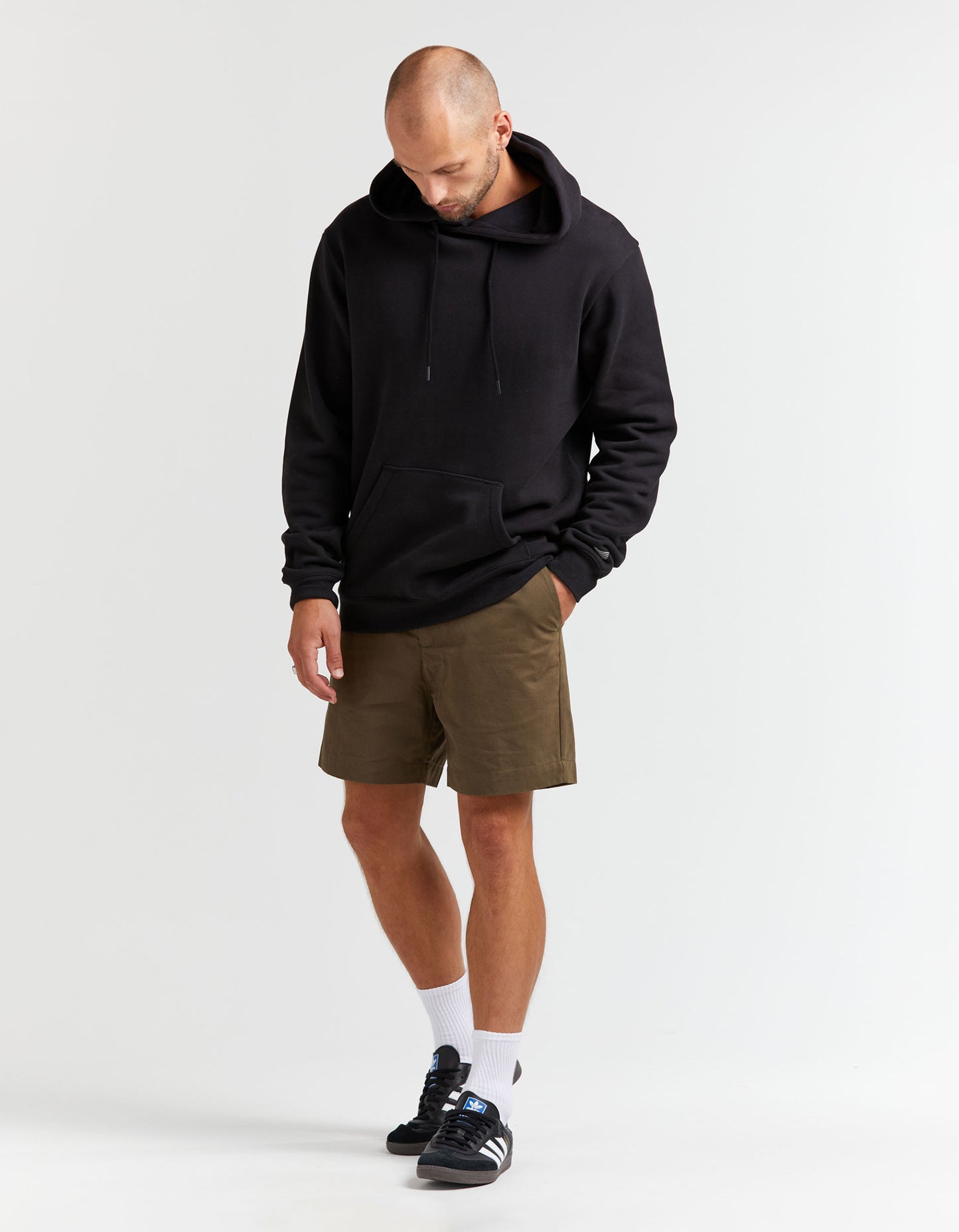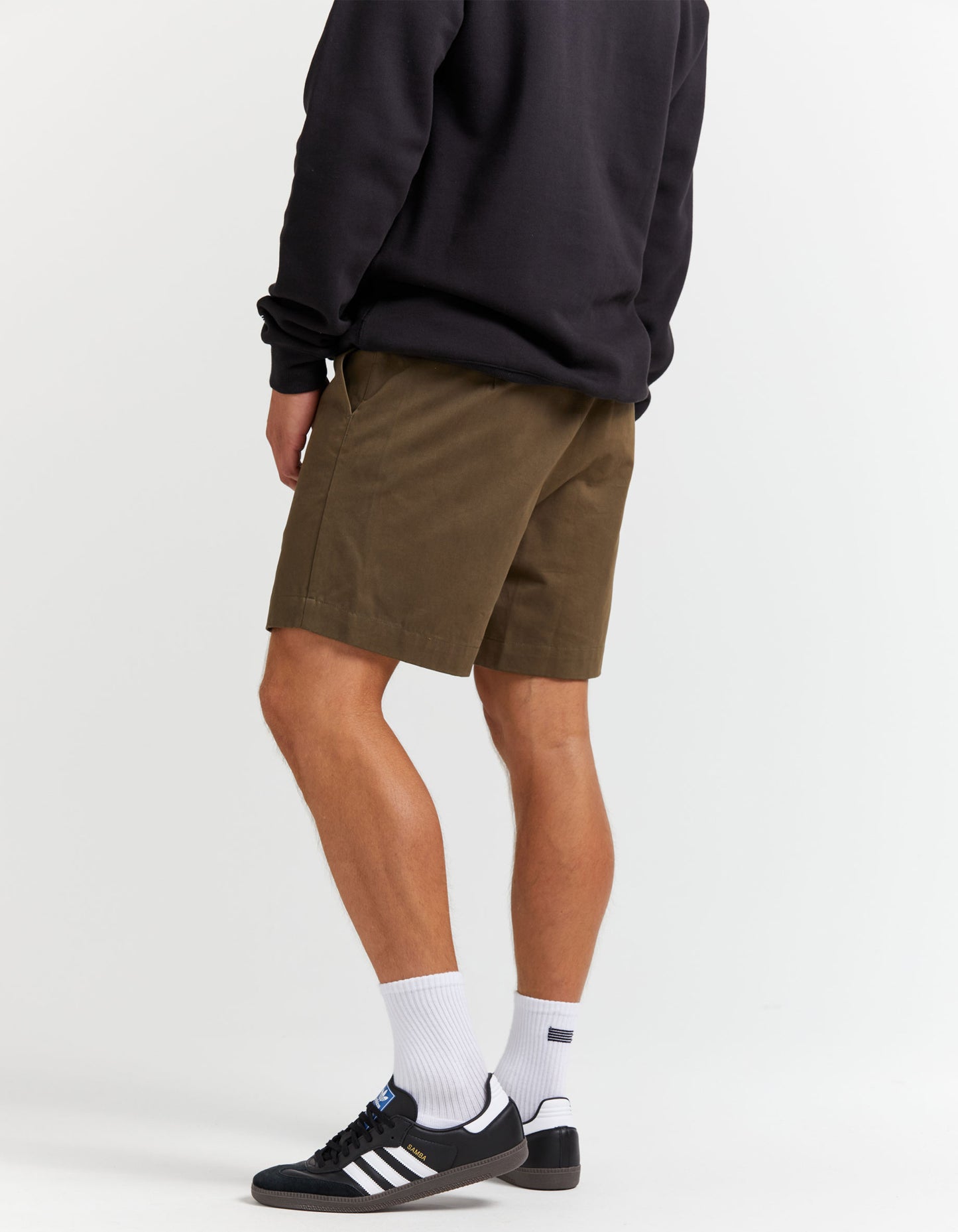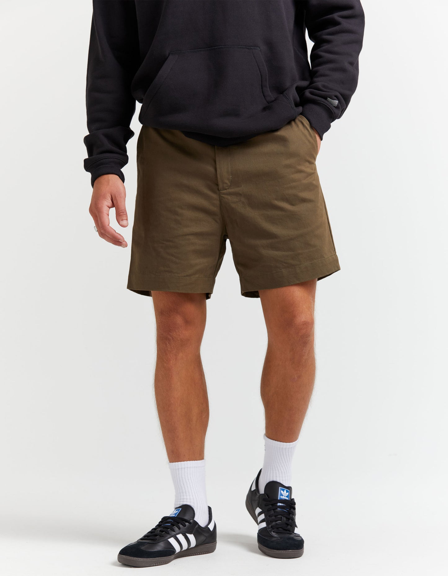 A modern take on your classic chino short - Featuring a zip fly and single button closure with a fixed waist and belt loops.