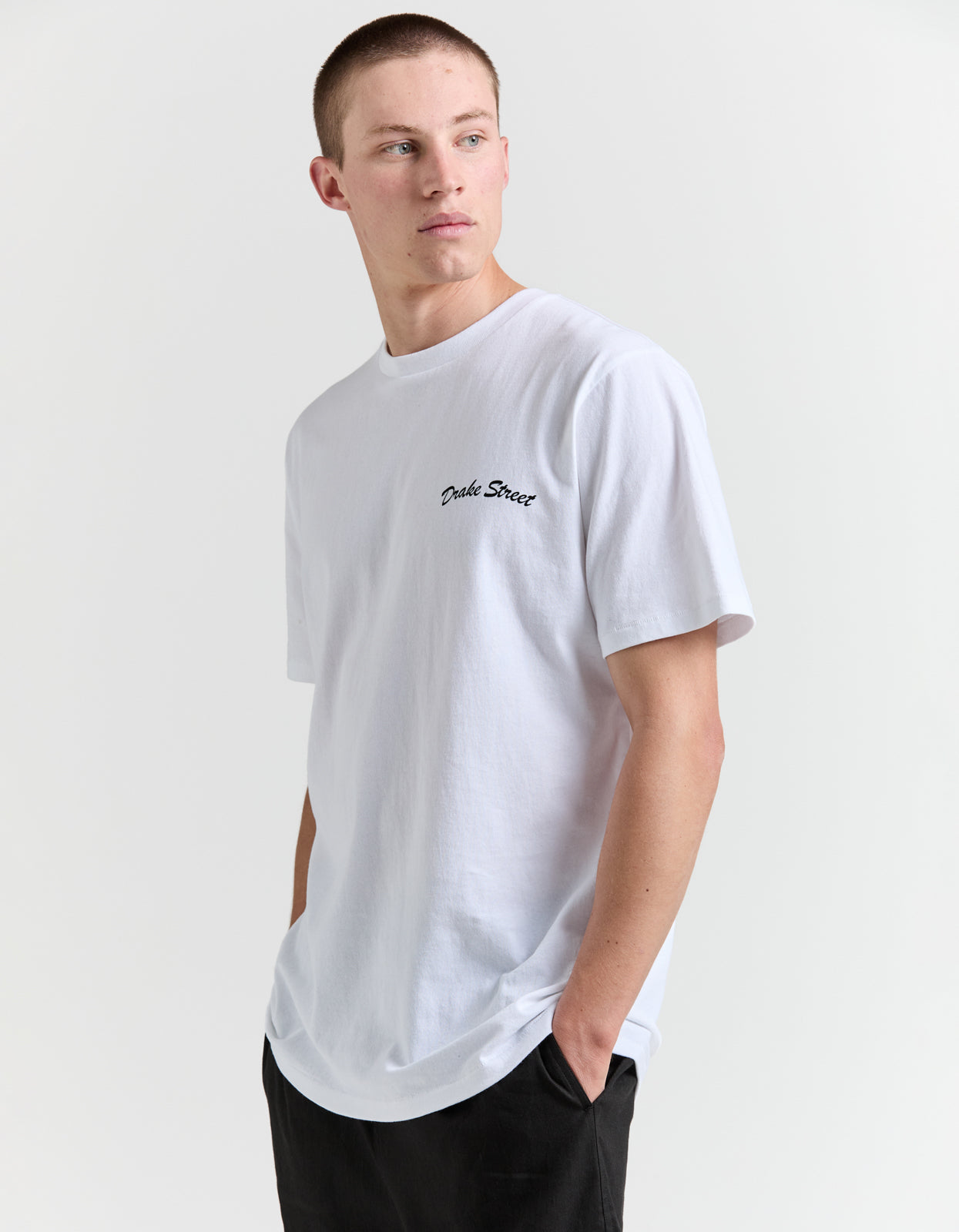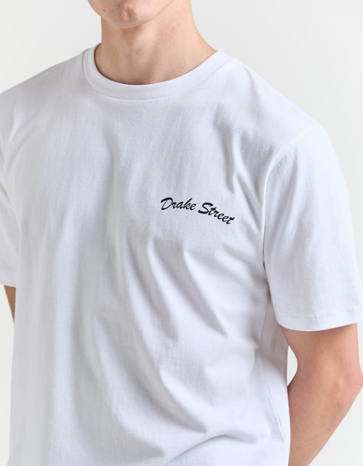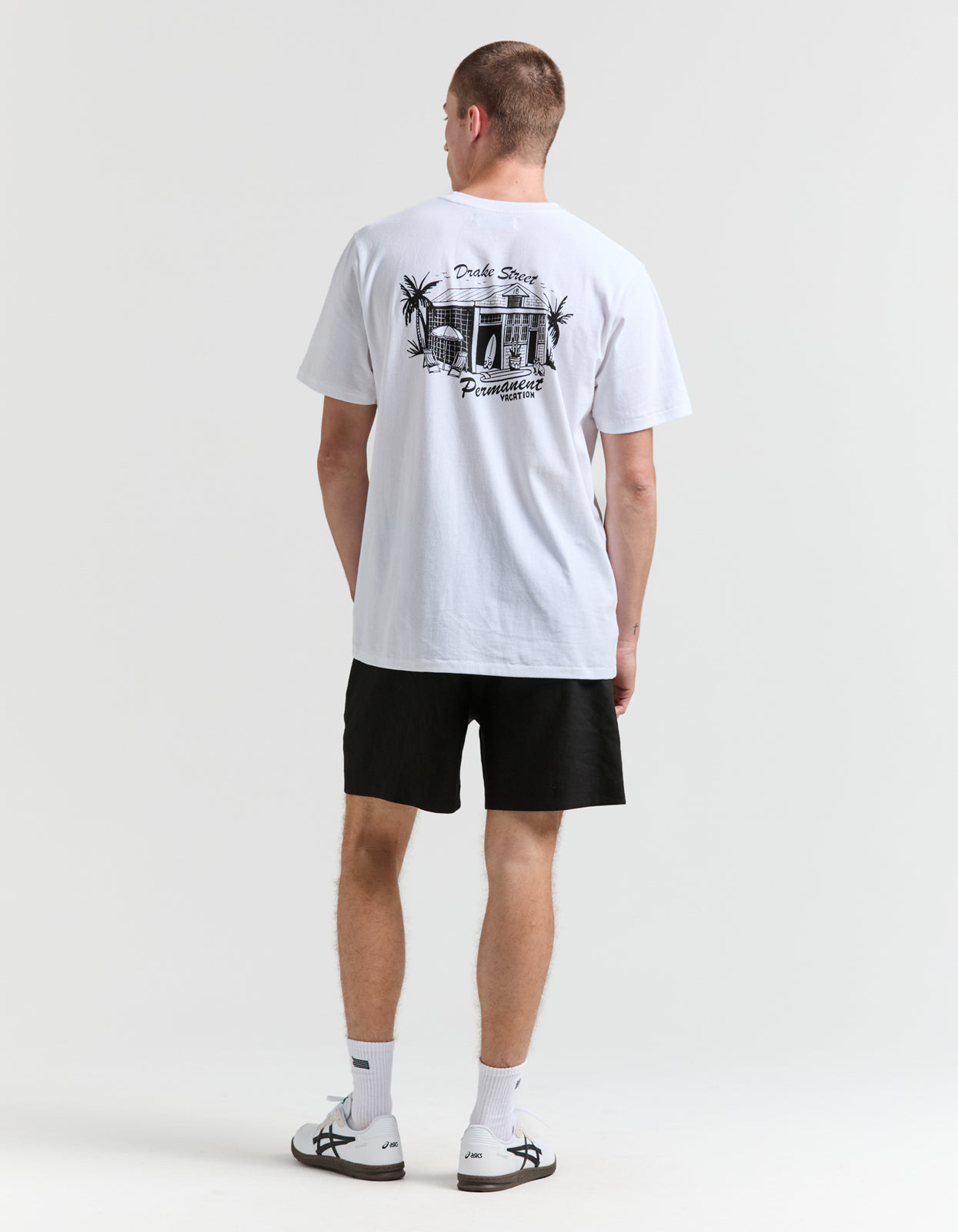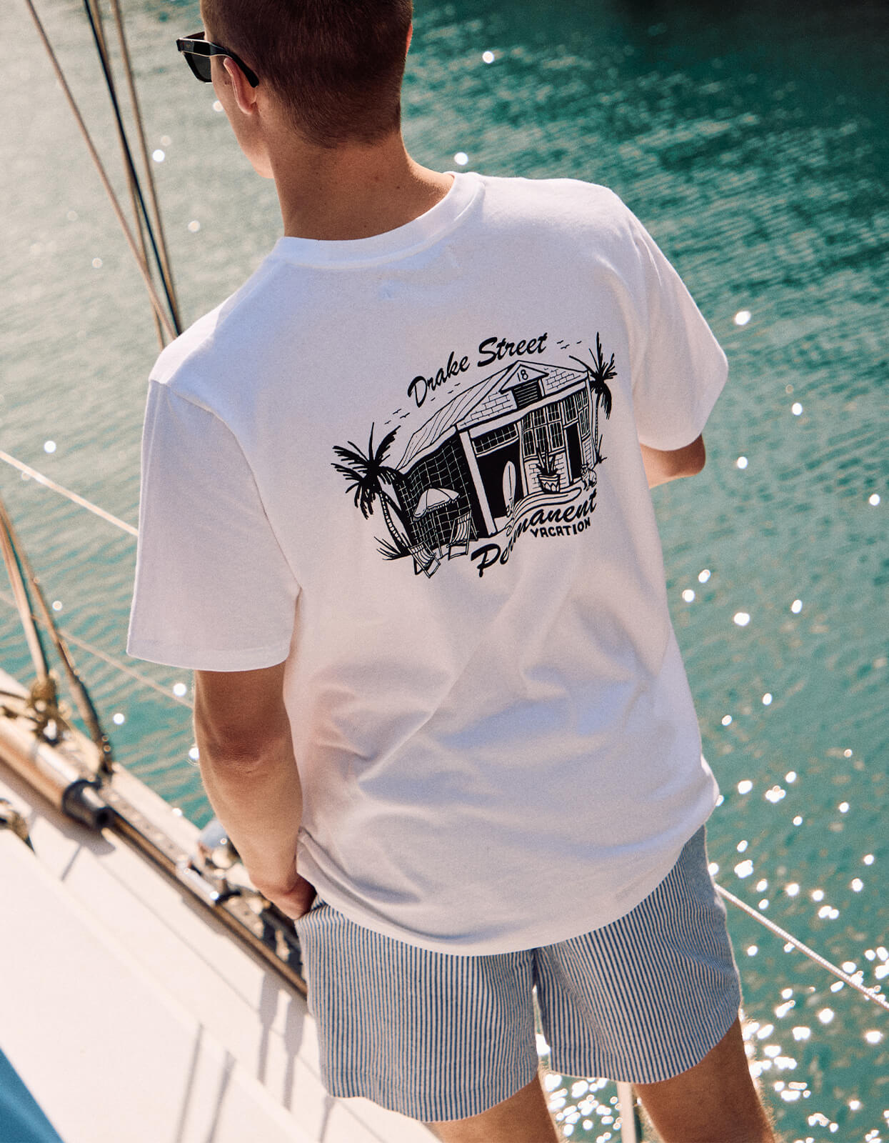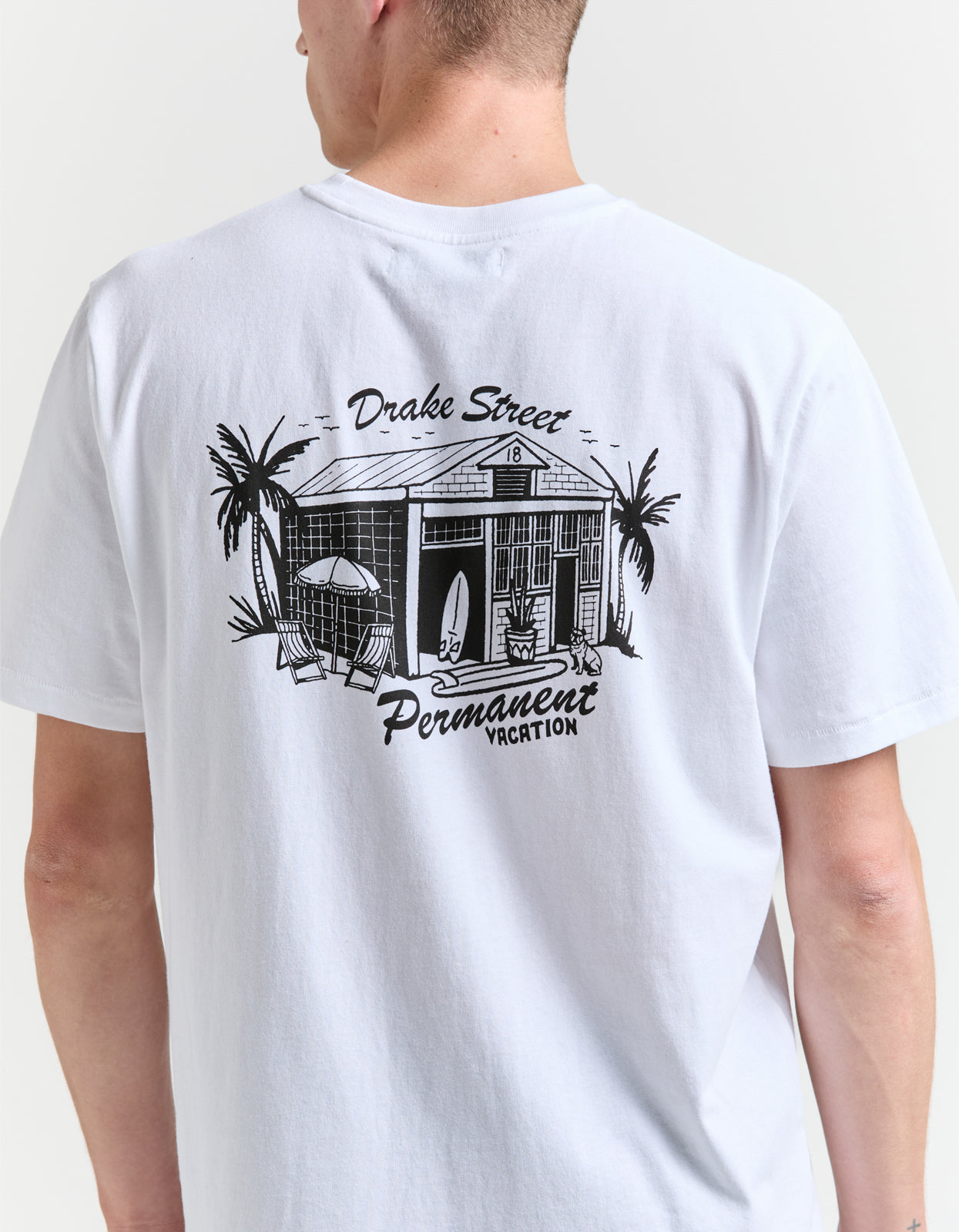 Escape to endless summers with our Permanent Vacation Tee in White from Drake Street.