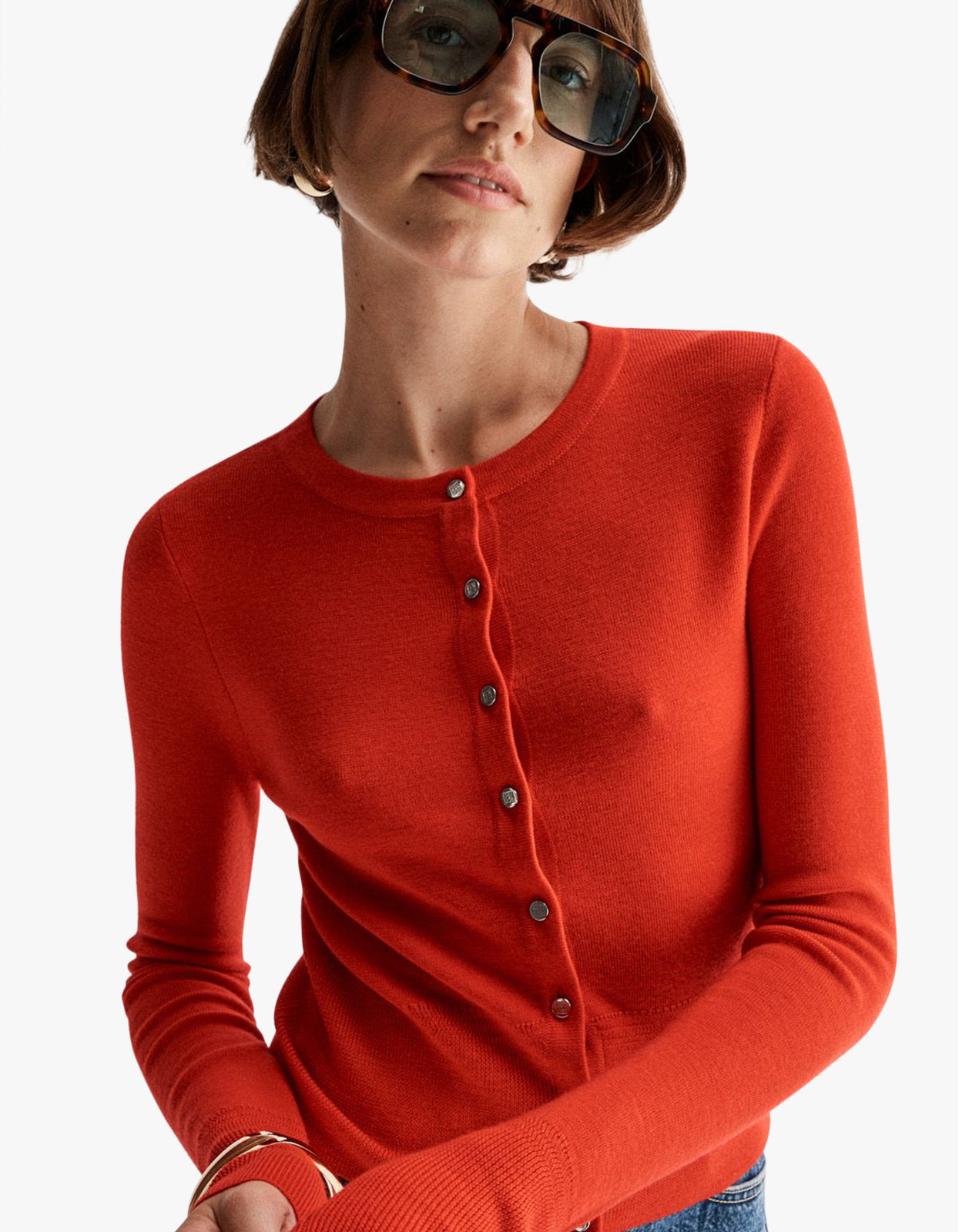 A timeless staple with a bold twist- The Elka Collective Astrid Cardi in red brings effortless polish to your everyday look.