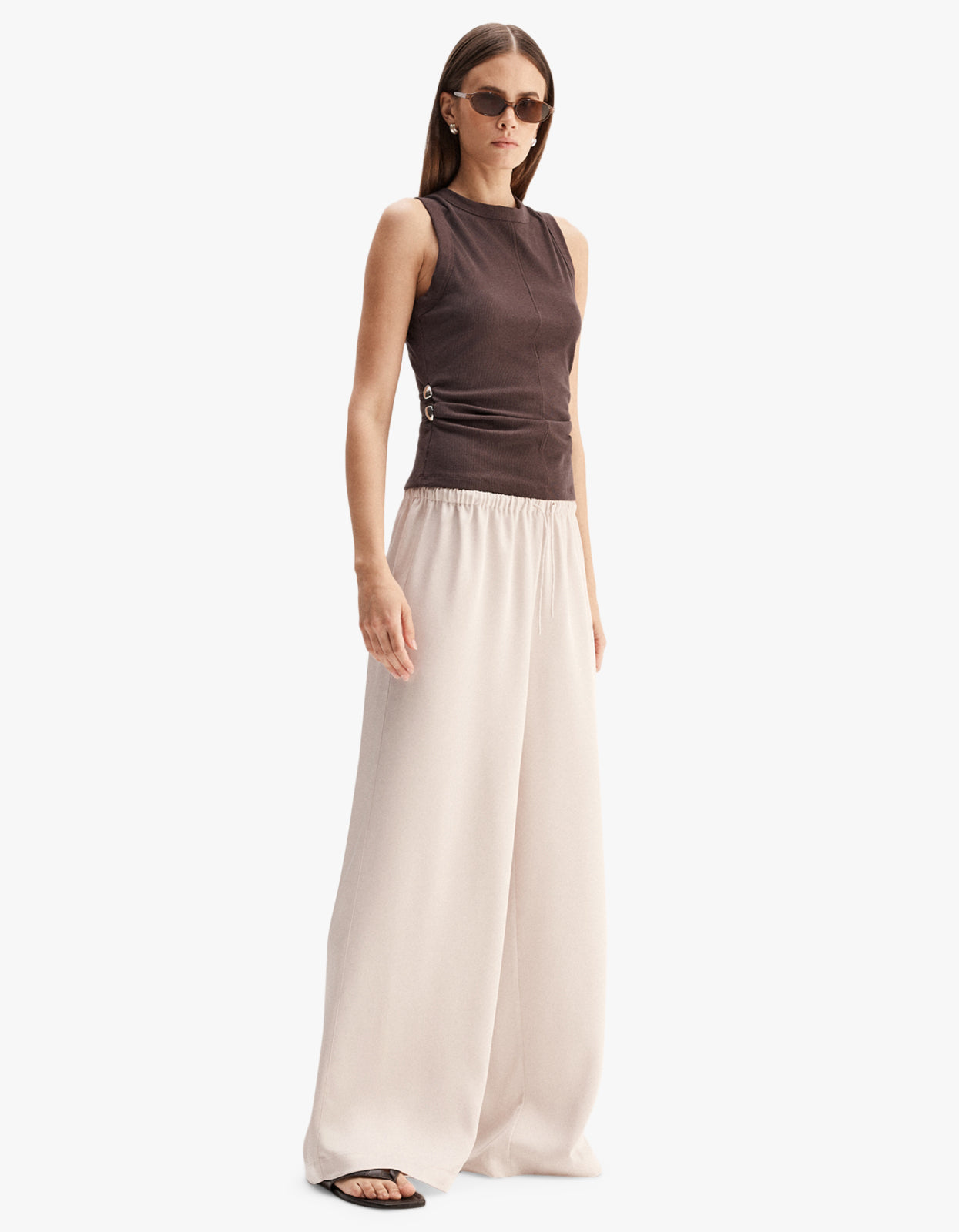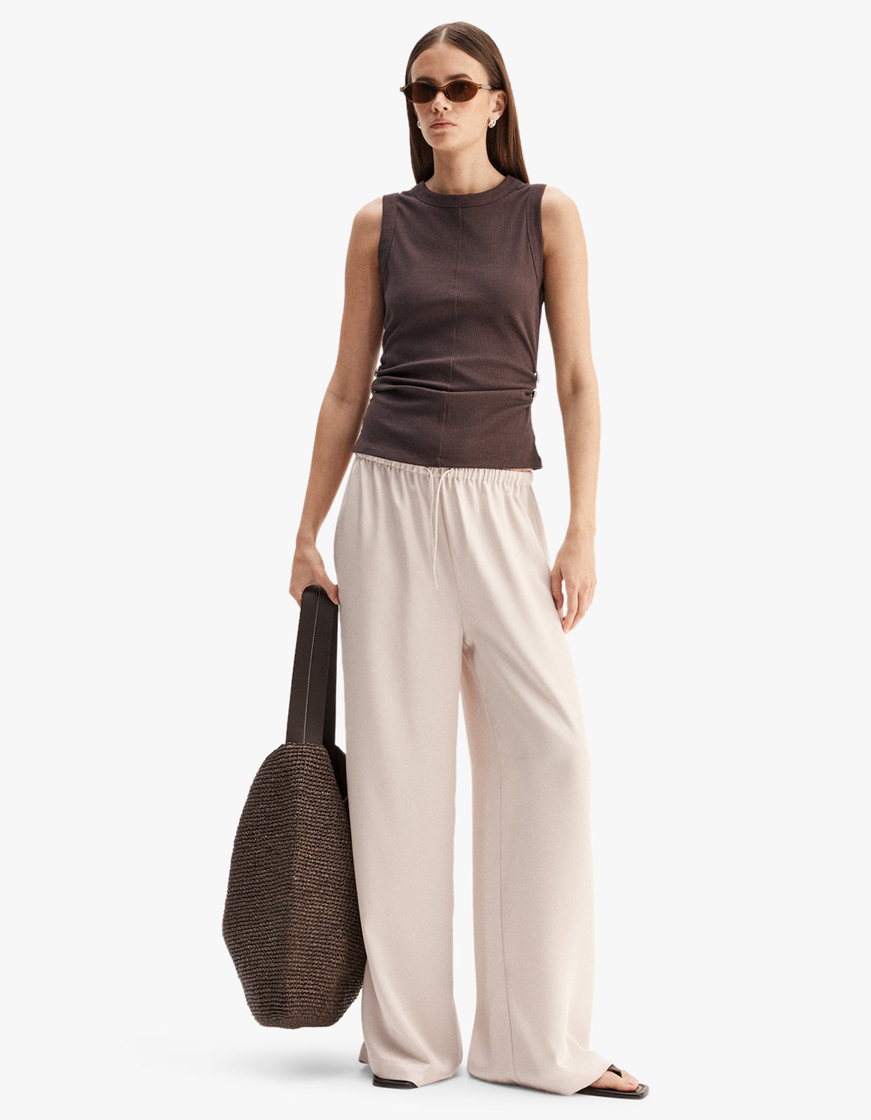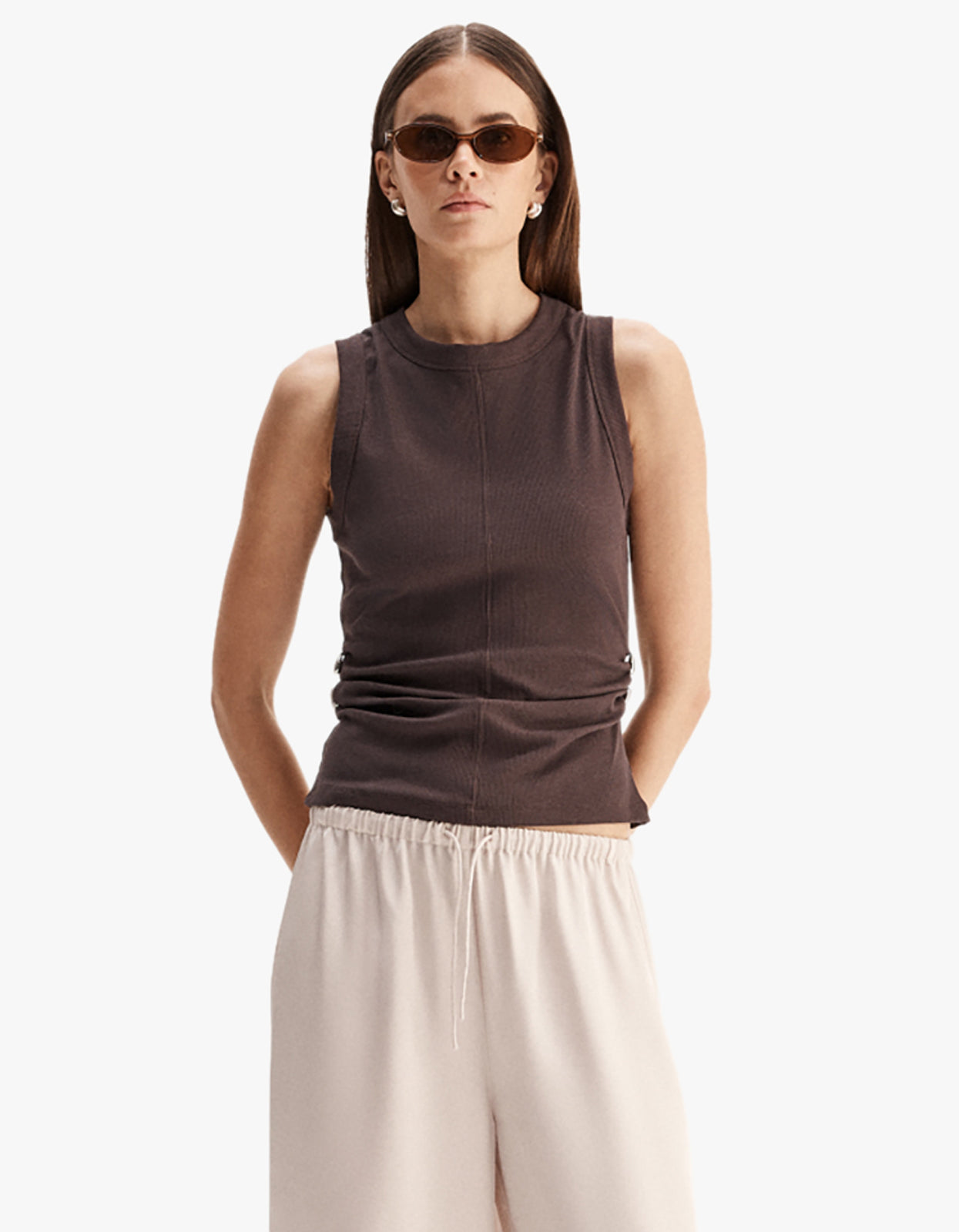 The Charlie Top in Chocolate is crafted from a signature stretch knit fabric, offering a soft touch and a sleek, slim fit. It's fitted silhouette and cinched waist is perfect for elevating your daily wardrobe.