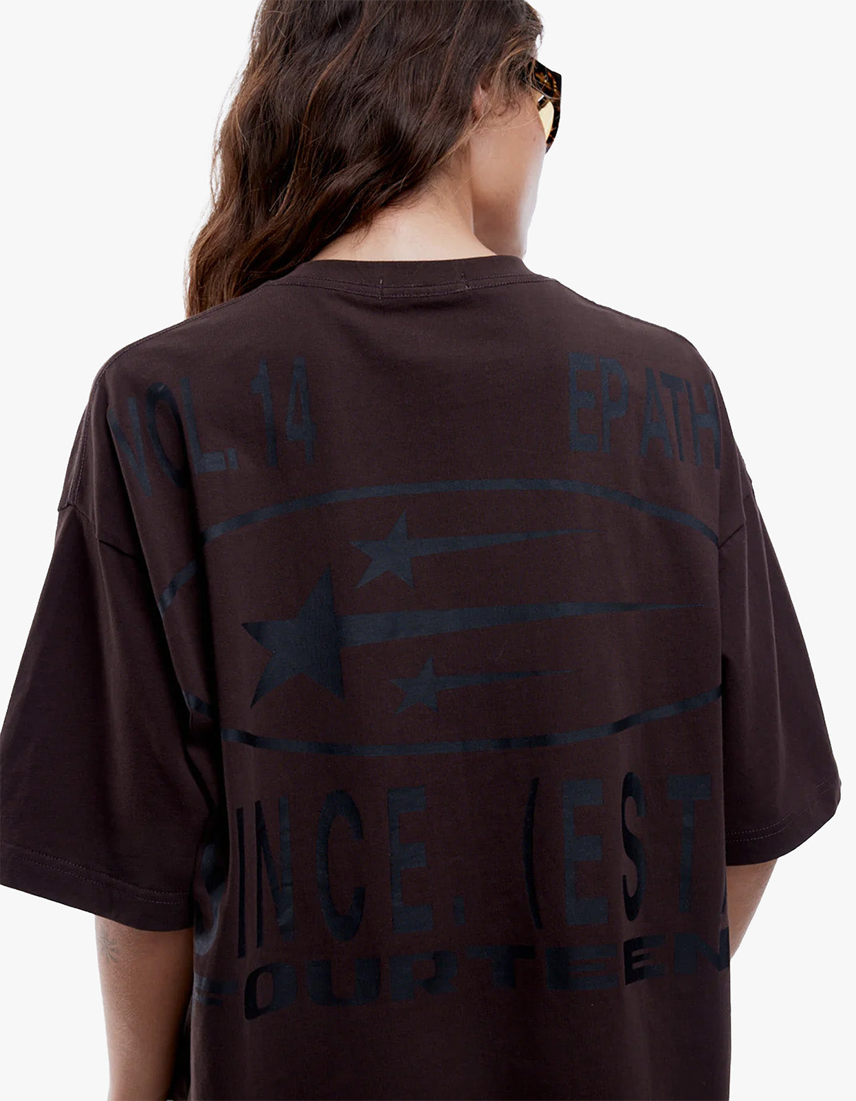 Meet the Ena Pelly Pelly Sport Star Tee in Washed Cocoa—where bold lines meet casual rhythm.