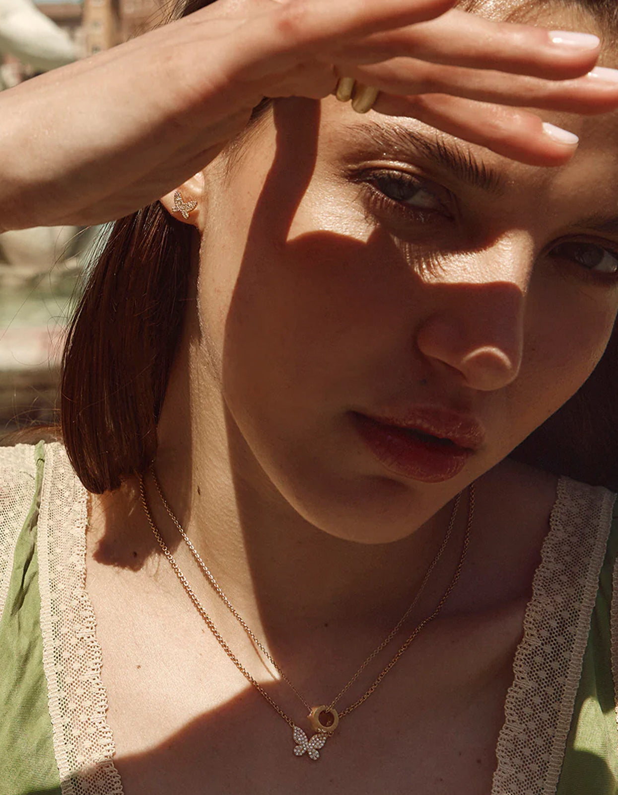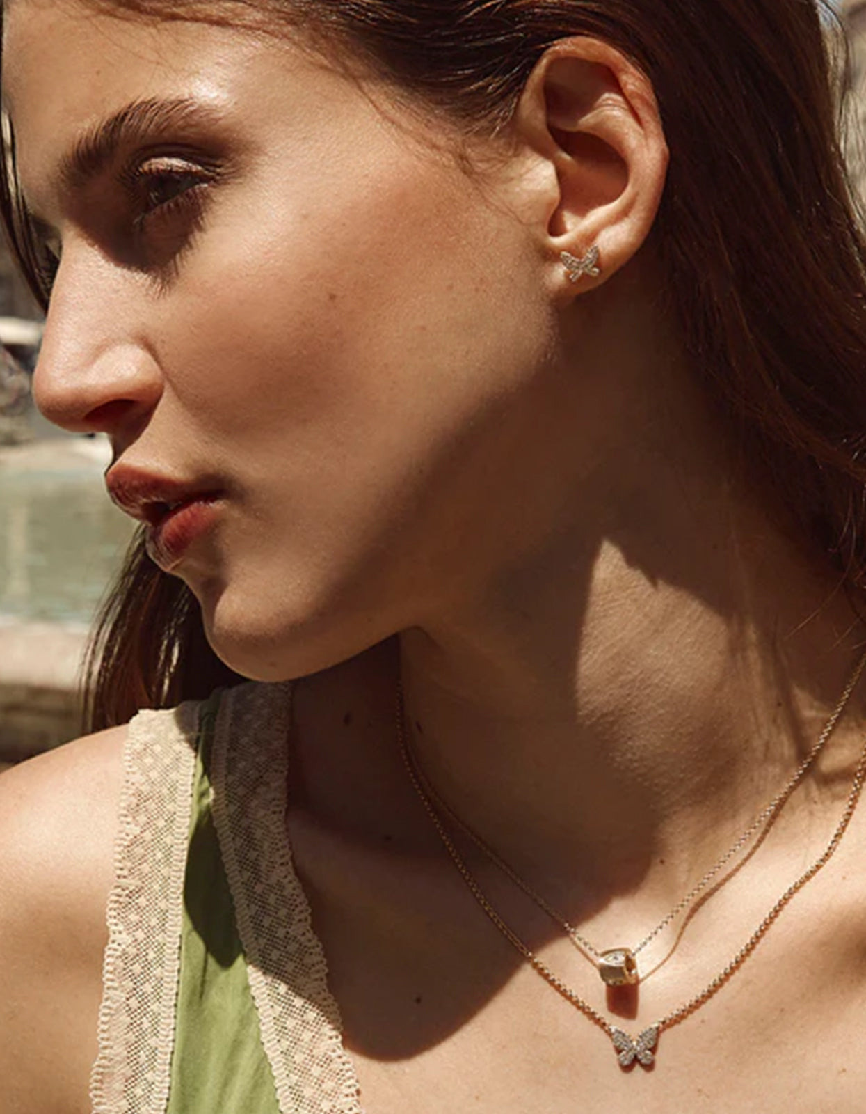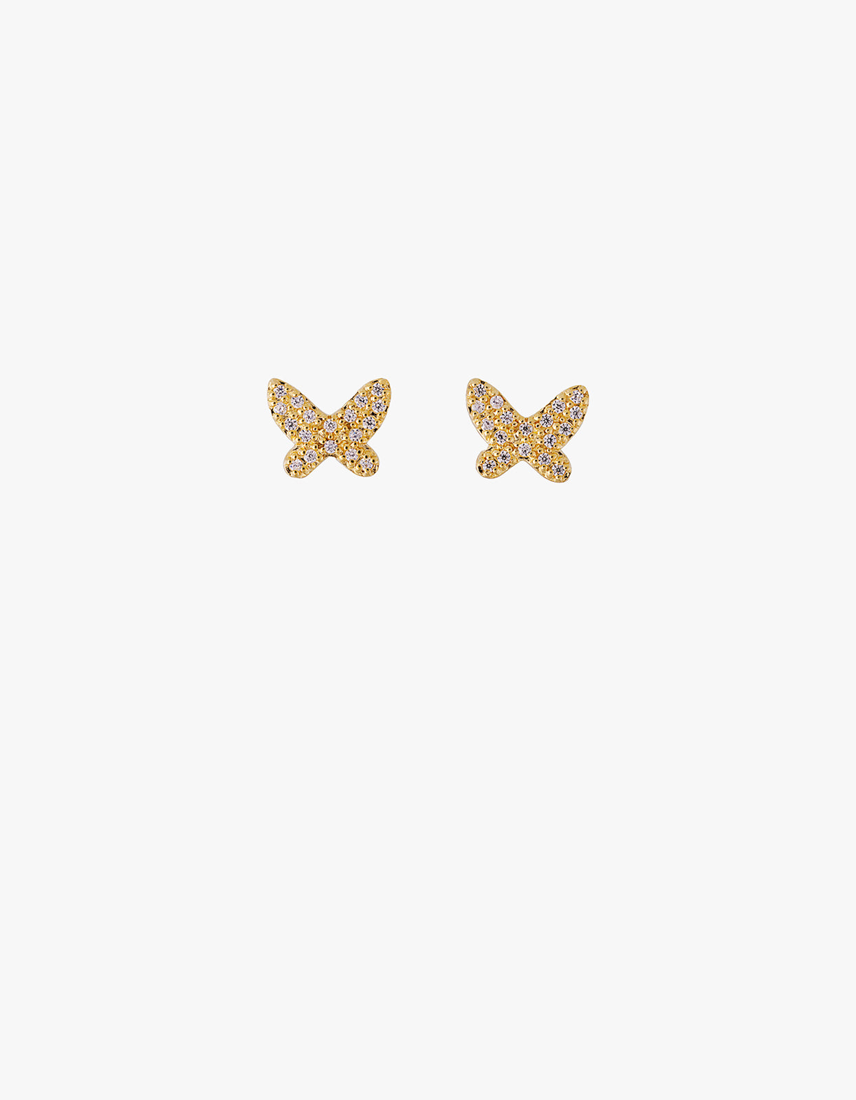 Experience a touch of elegance and whimsy with Fairley's Butterfly Pave Studs in Gold.