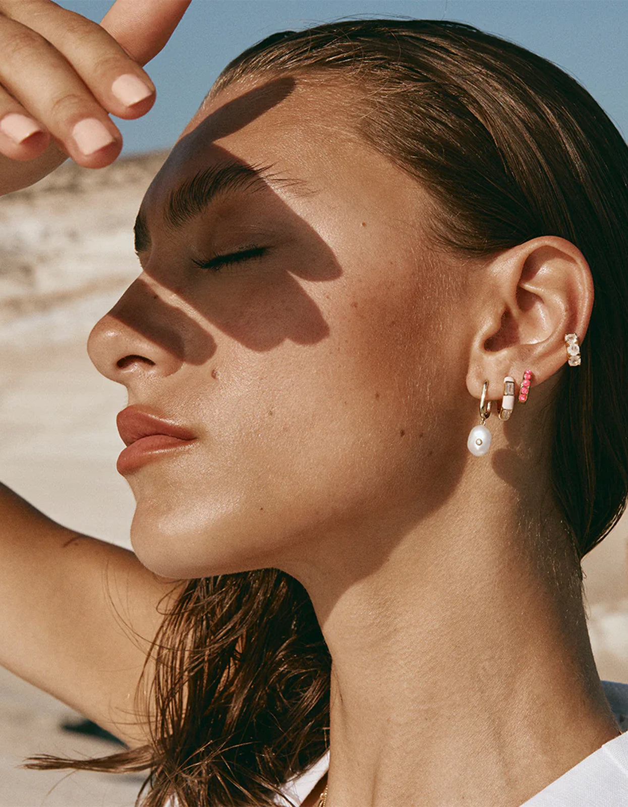 Indulge in luxurious simplicity with Fairley's Hot Pink Opal Crystal Huggie.