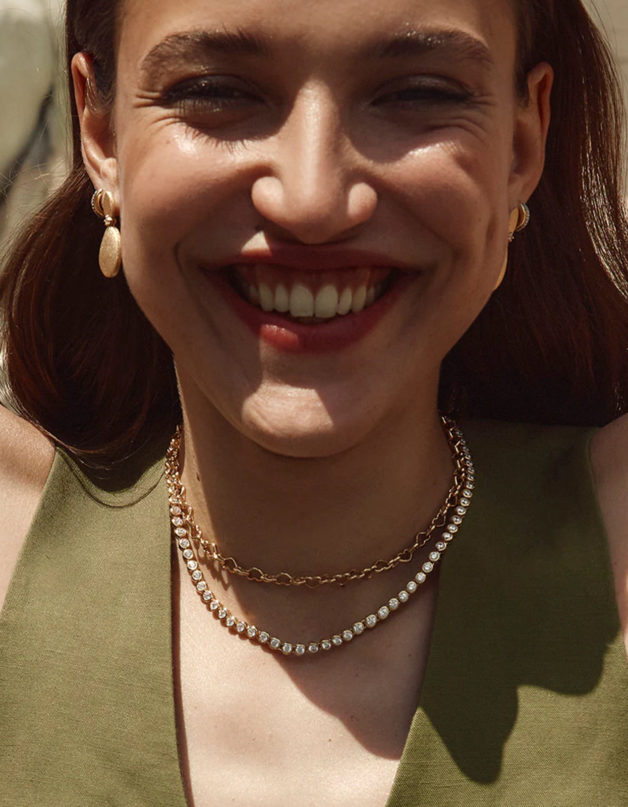 With its sleek design and stunning two tone finish, these huggie earrings will elevate any outfit. Don't miss out on this staple addition.