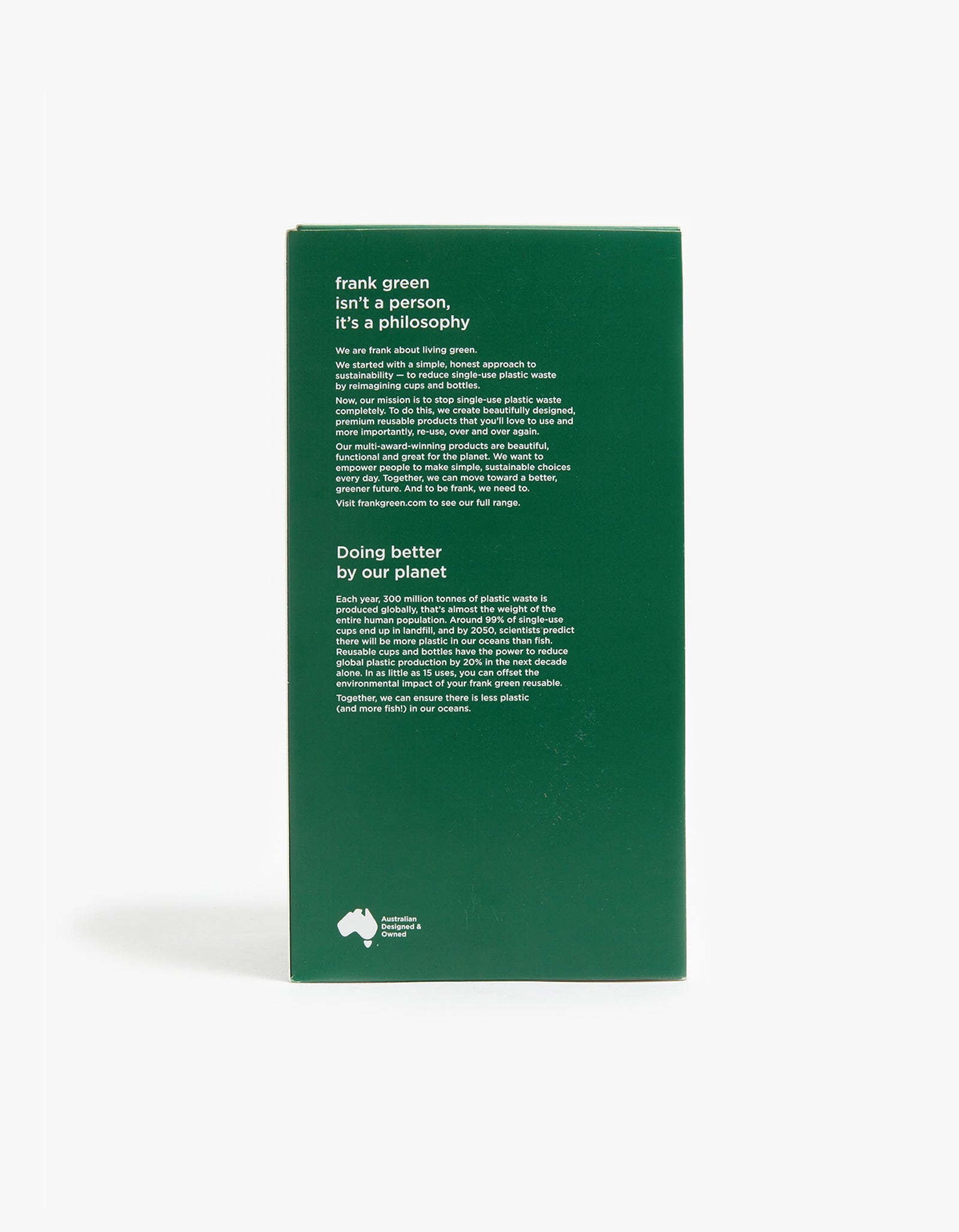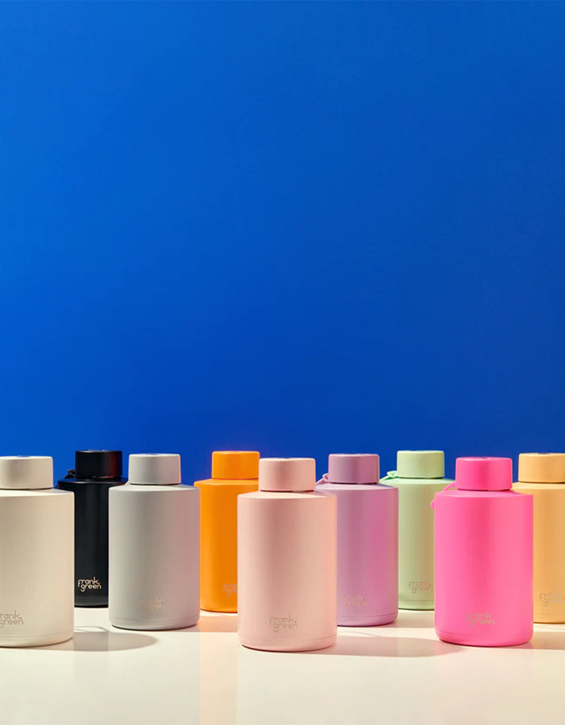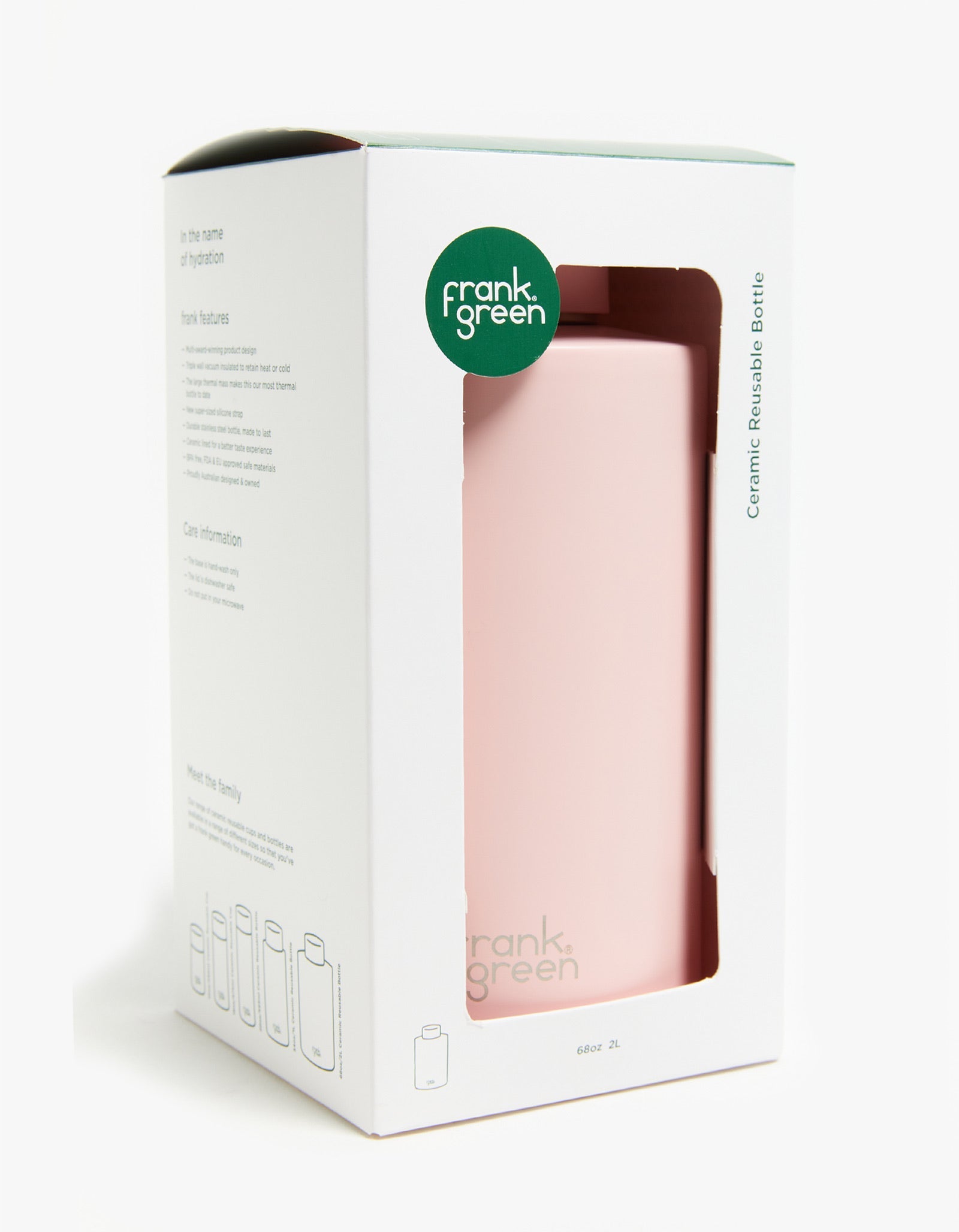 A brand that needs no introduction - Amp up your water bottle game with the professionals at Frank Green. A best-selling, multi-award-winning ceramic bottle for good reason, vacuum-insulated and triple-walled to retain heat and conserve cool so you can enjoy your drink with no metallic interference. Purposefully crafted and made to last, this is as high-quality as it is beautifully designed. In this extra large size, you will have a whole days worth of water that will stay chilly the entire time!
