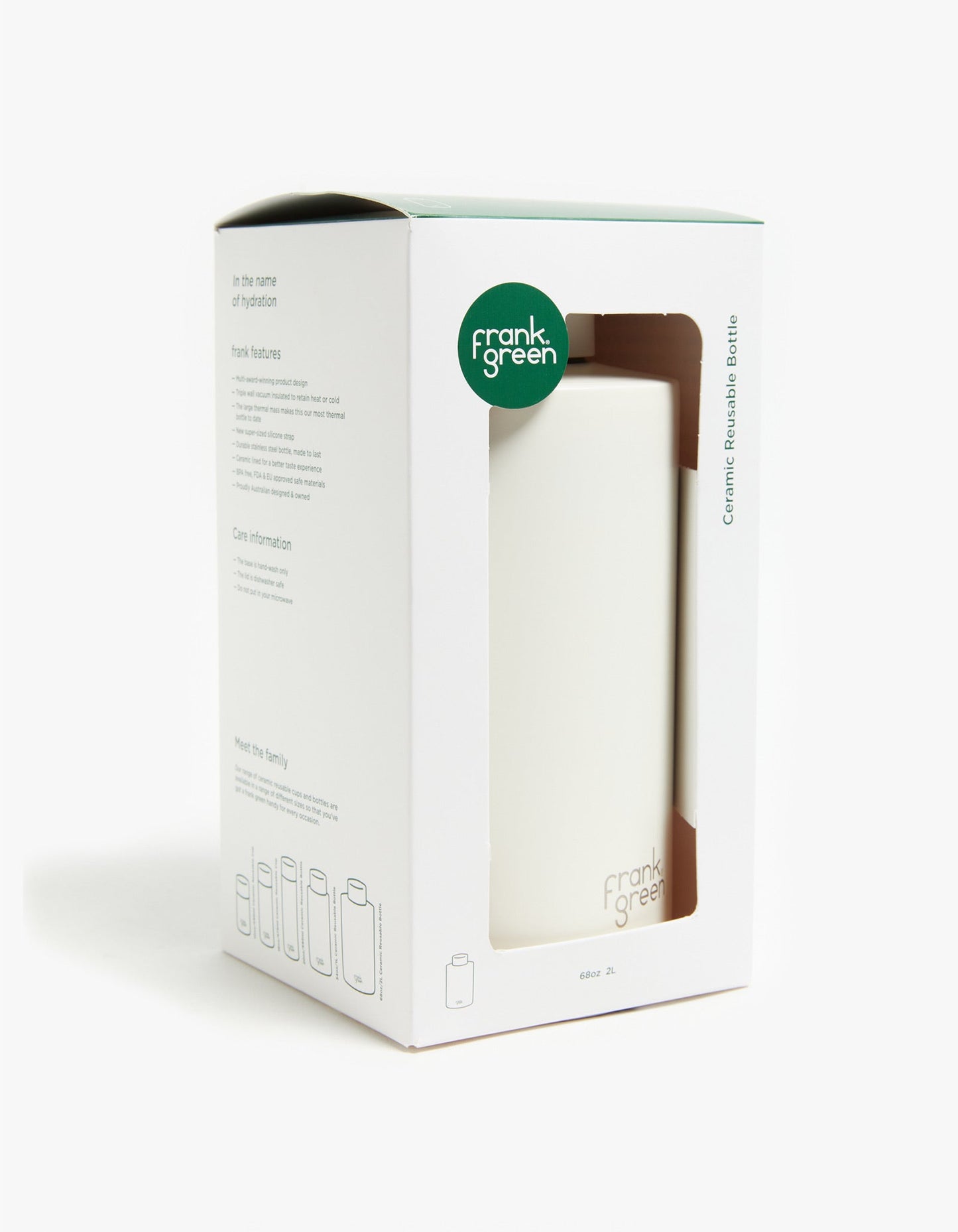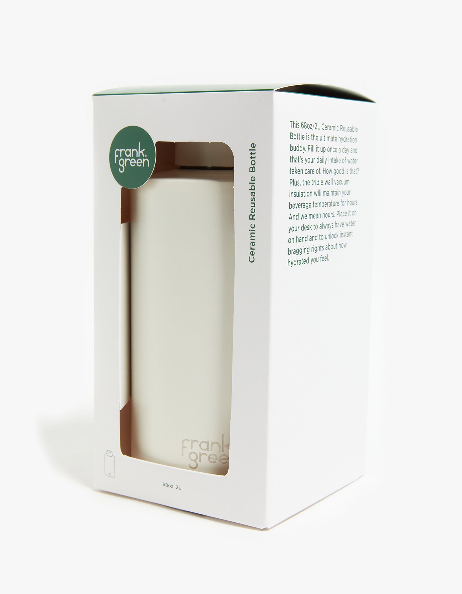 A brand that needs no introduction - Amp up your water bottle game with the professionals at Frank Green. A best-selling, multi-award-winning ceramic bottle for good reason, vacuum-insulated and triple-walled to retain heat and conserve cool so you can enjoy your drink with no metallic interference. Purposefully crafted and made to last, this is as high-quality as it is beautifully designed. In this extra large size, you will have a whole days worth of water that will stay chilly the entire time!