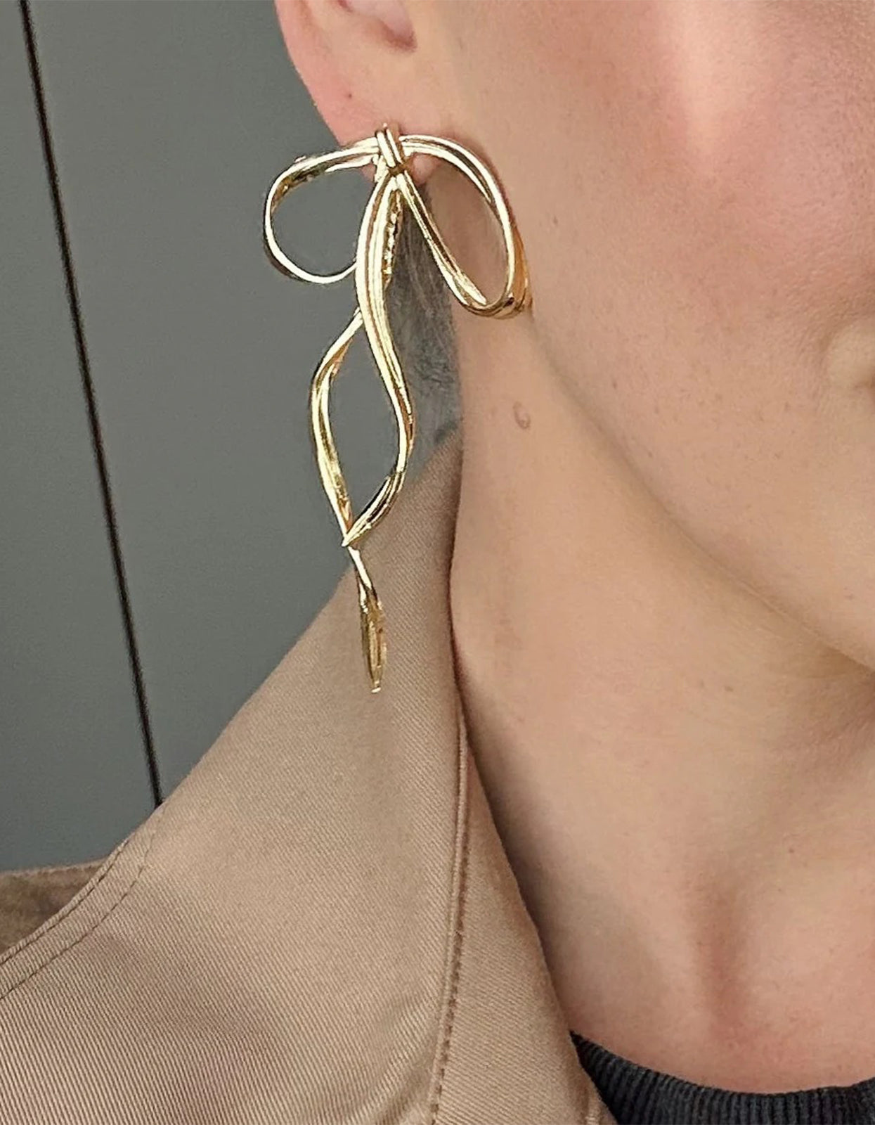 These statement earrings feature a stunning gold bow design that is sure to make a statement and elevate your style. Perfect for any occasion, these earrings are a must-have for any fashion-forward individual.
