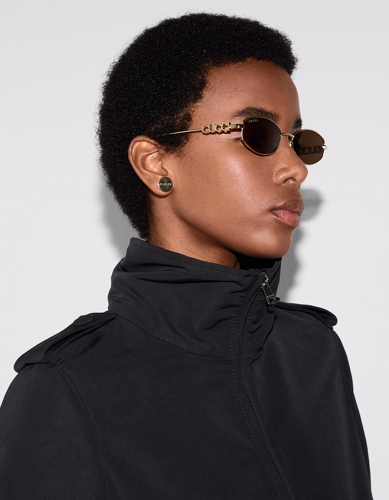 - Shiny gold-toned metal temples with cut-out Gucci logo