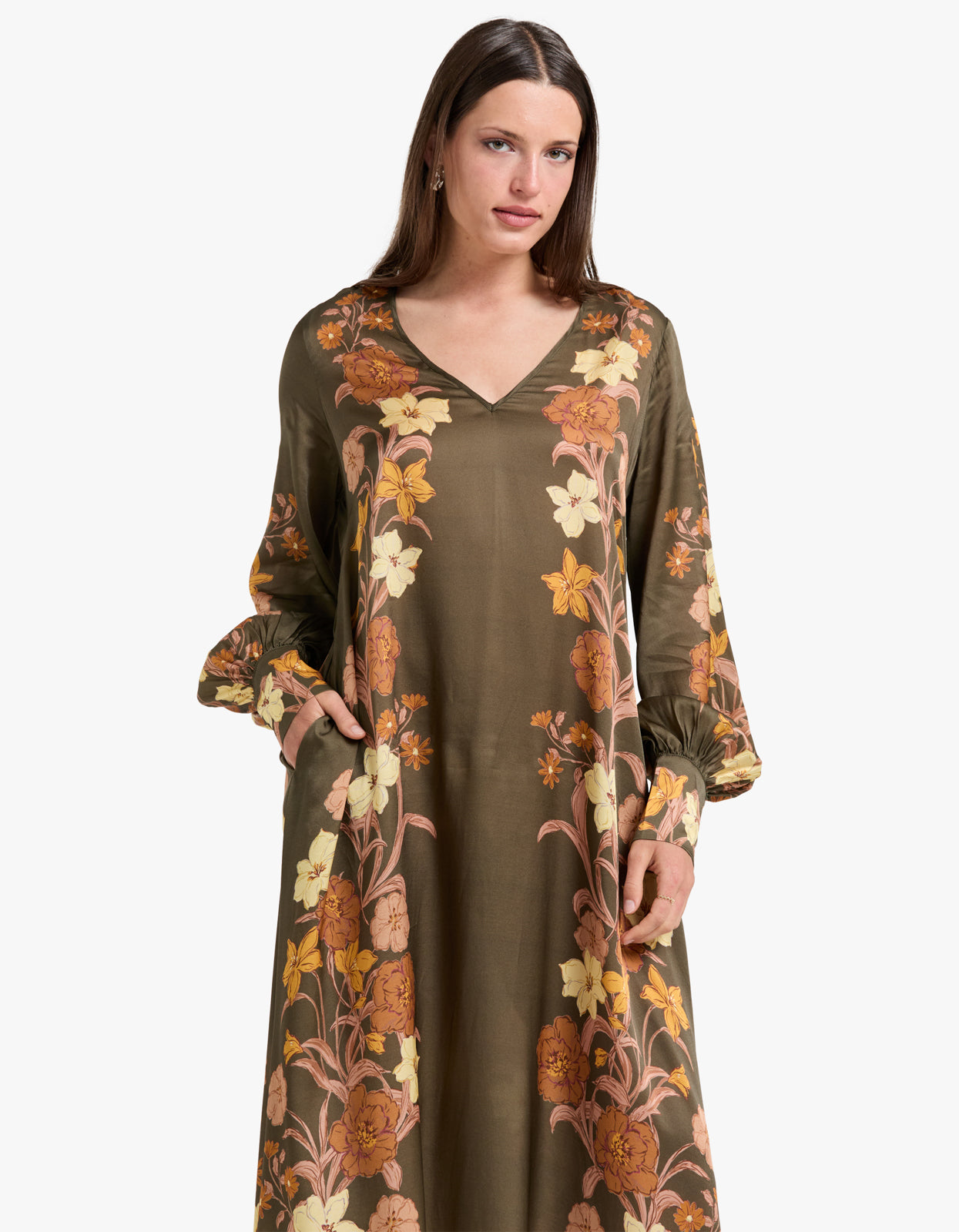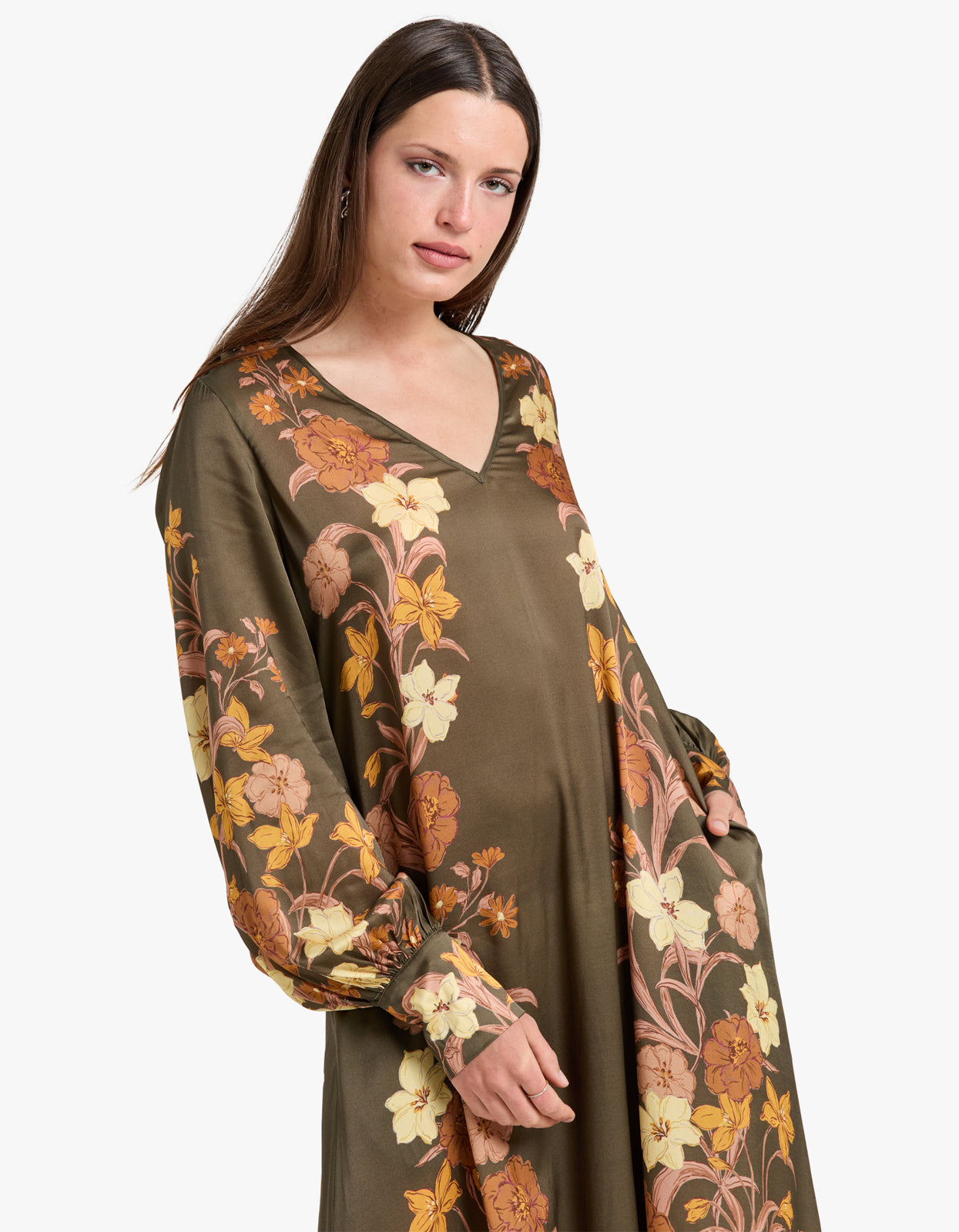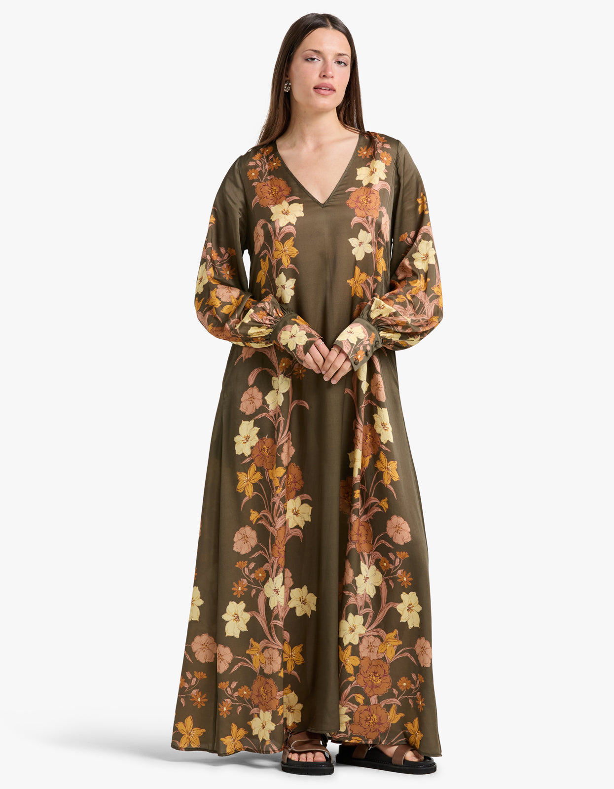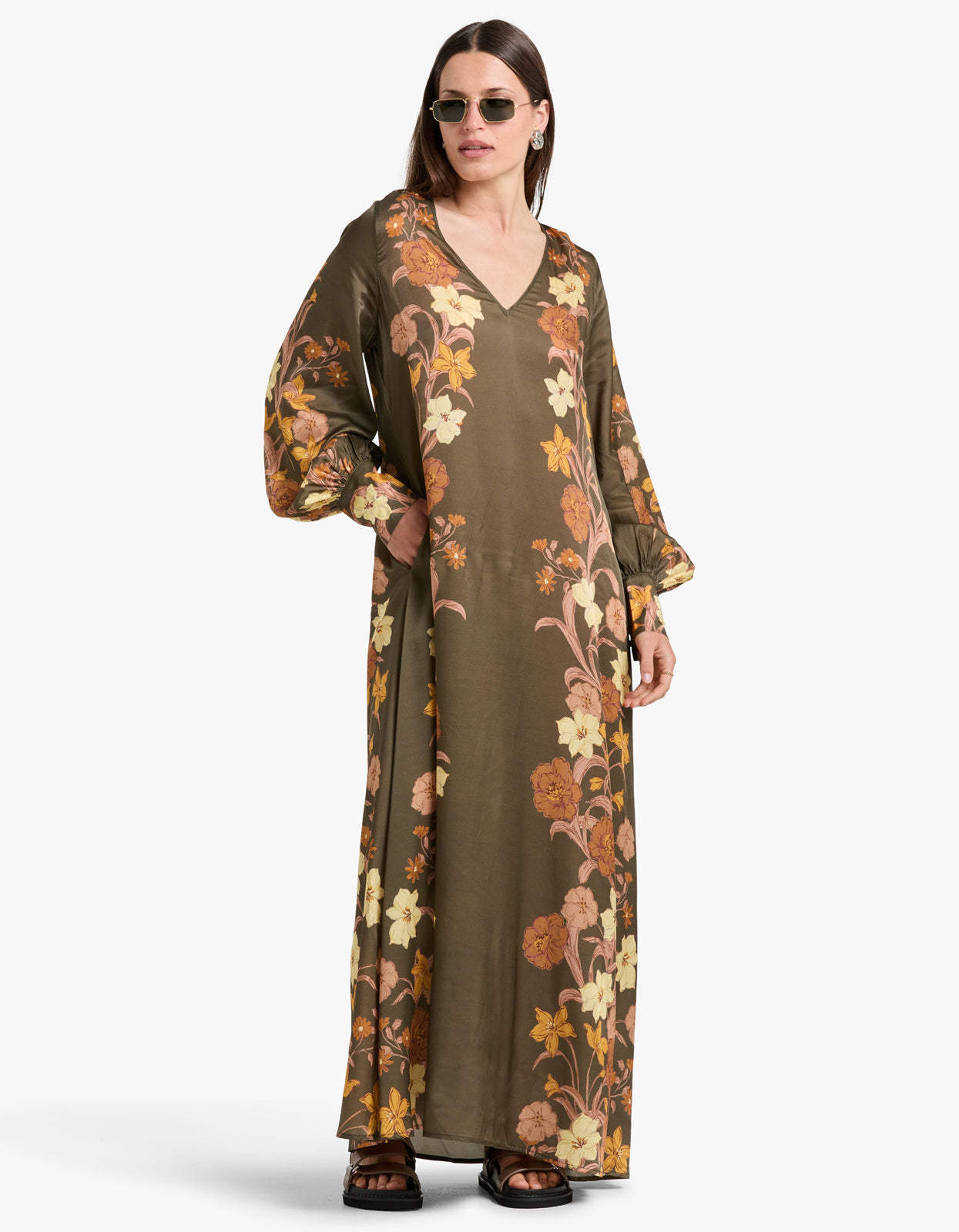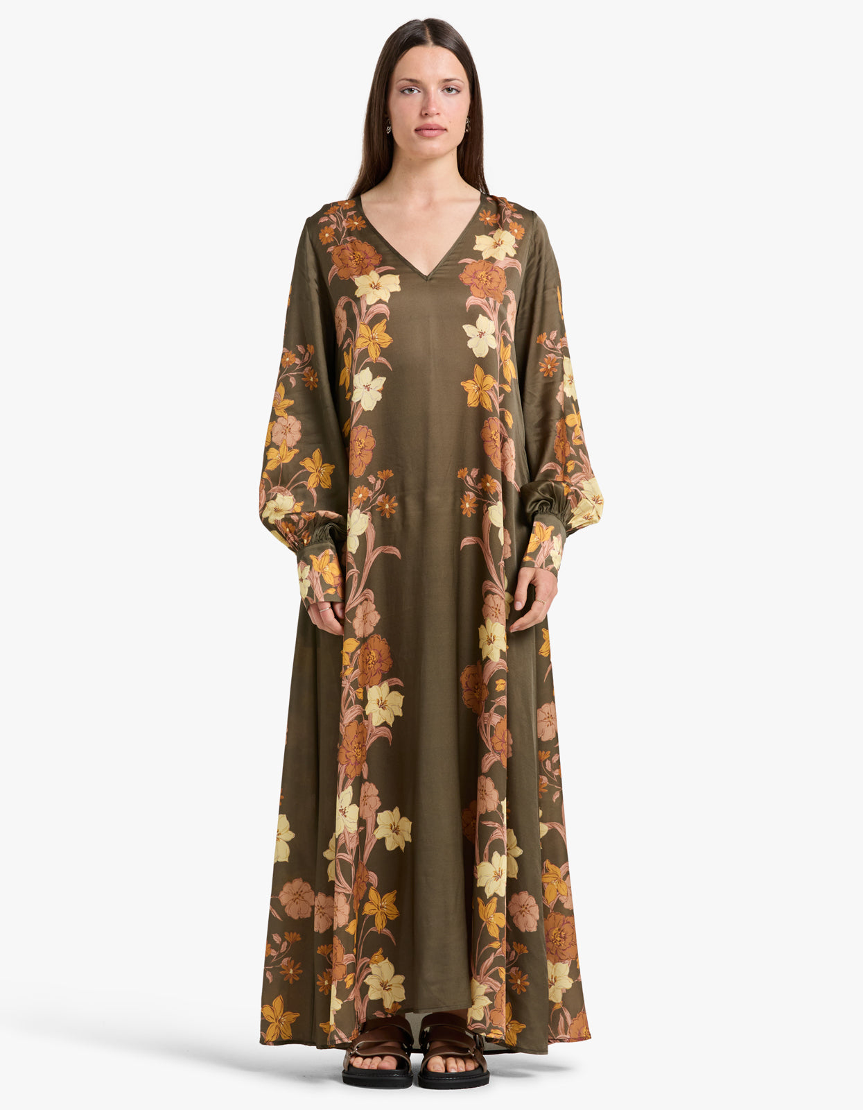 Discover the Hansen and Gretel Agnes Dress—a longline maxi dress adorned with a unique placement print.