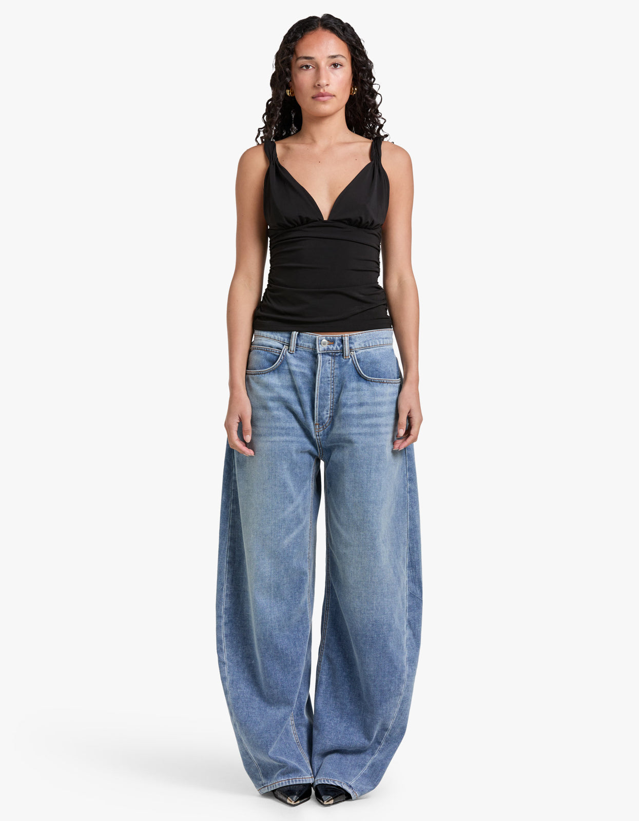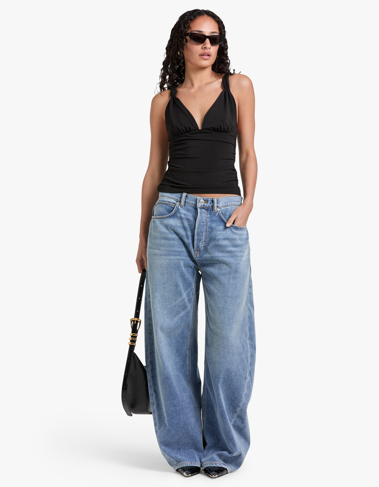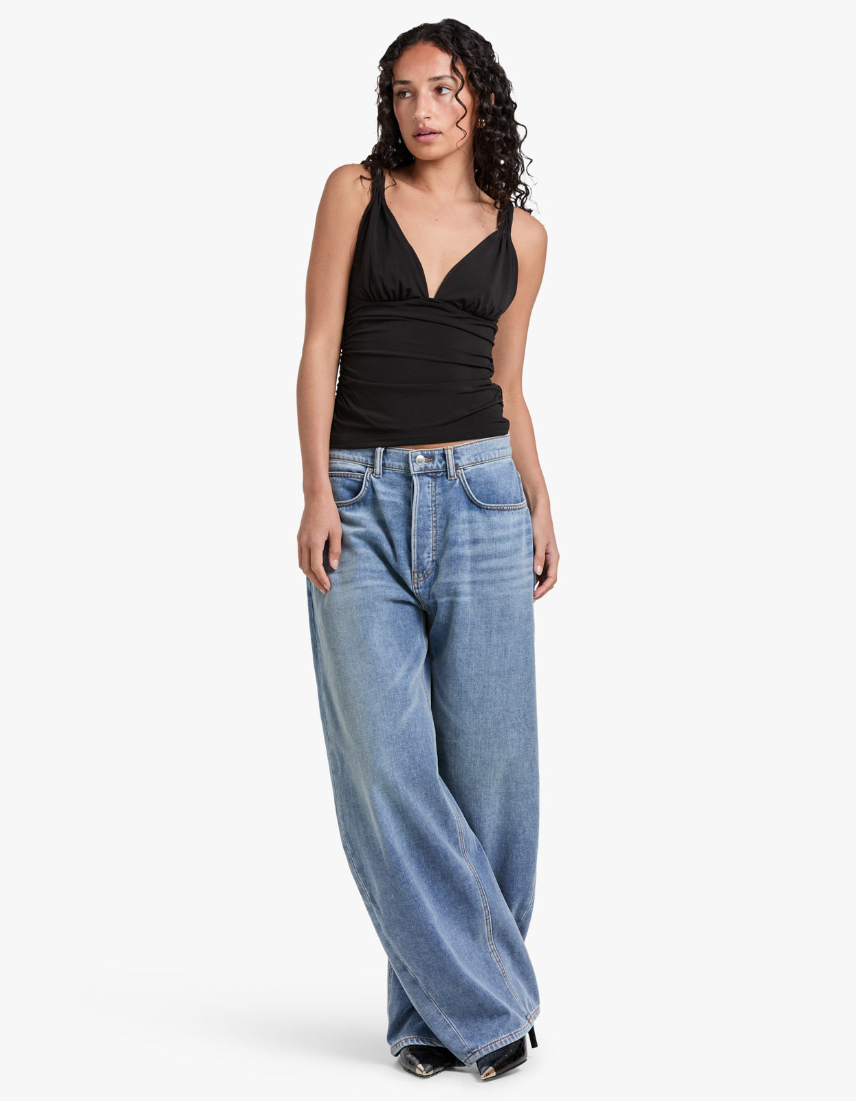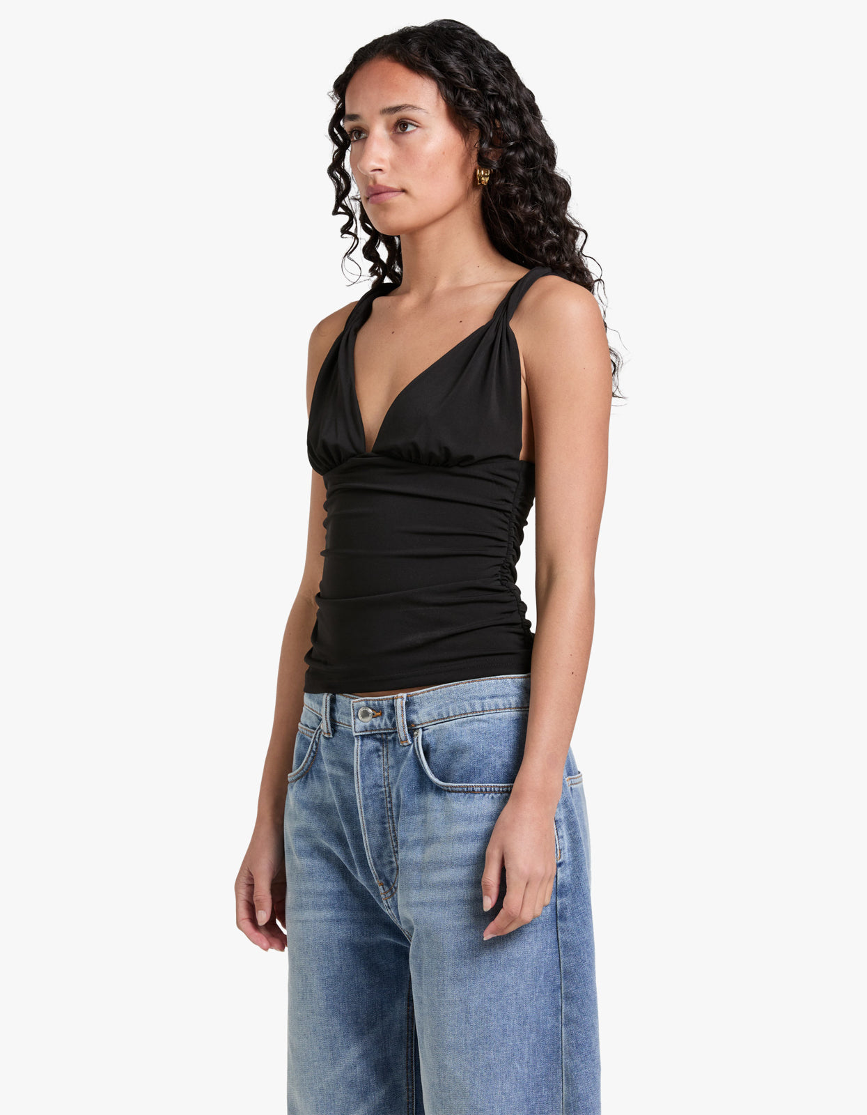 This tank boasts twisted shoulder detailing and a low back design, making it the perfect addition to any wardrobe. With expert craftsmanship and sleek style, this tank is a must-have for any fashion-forward individual.