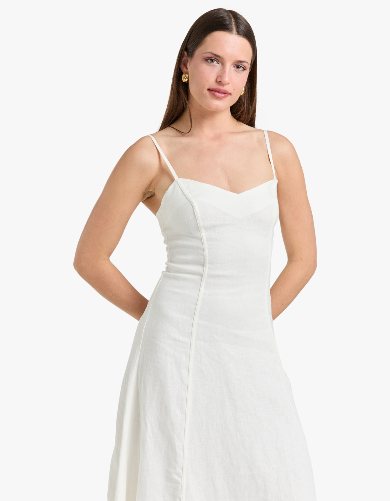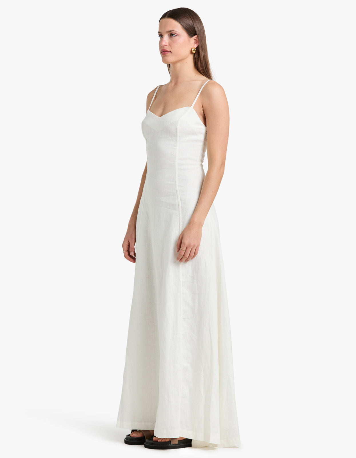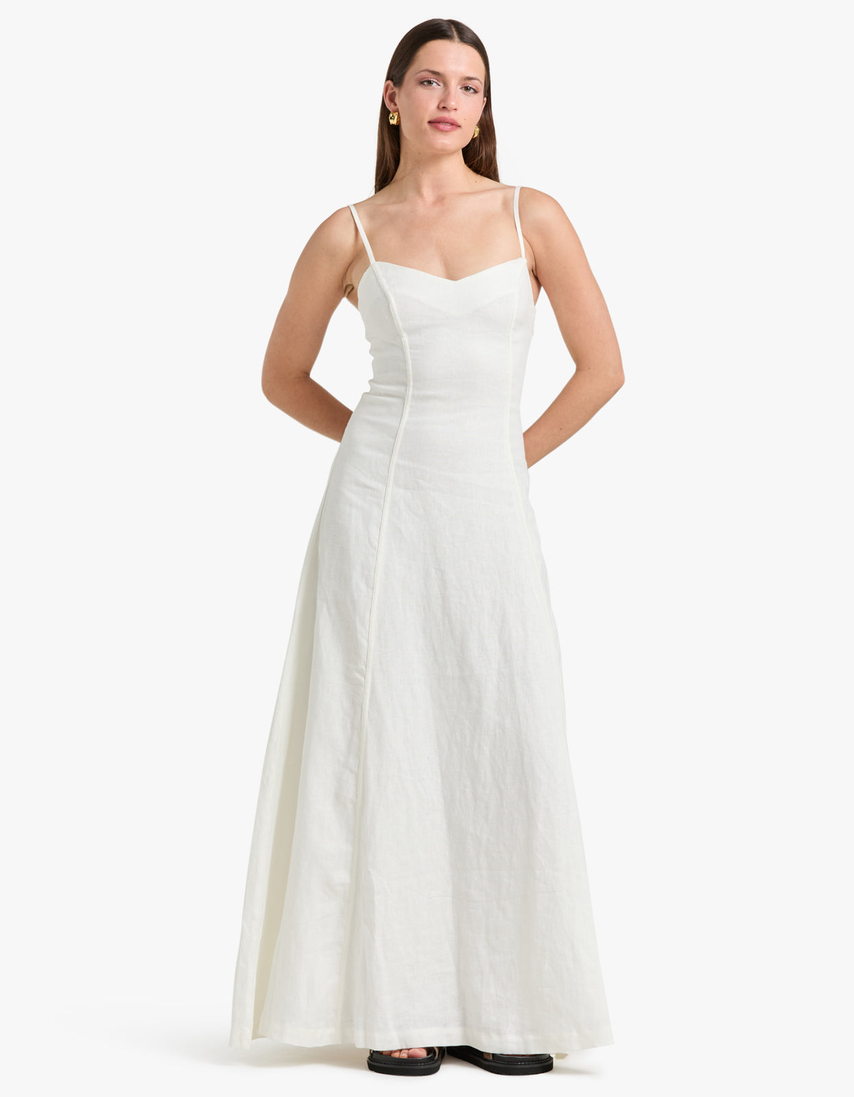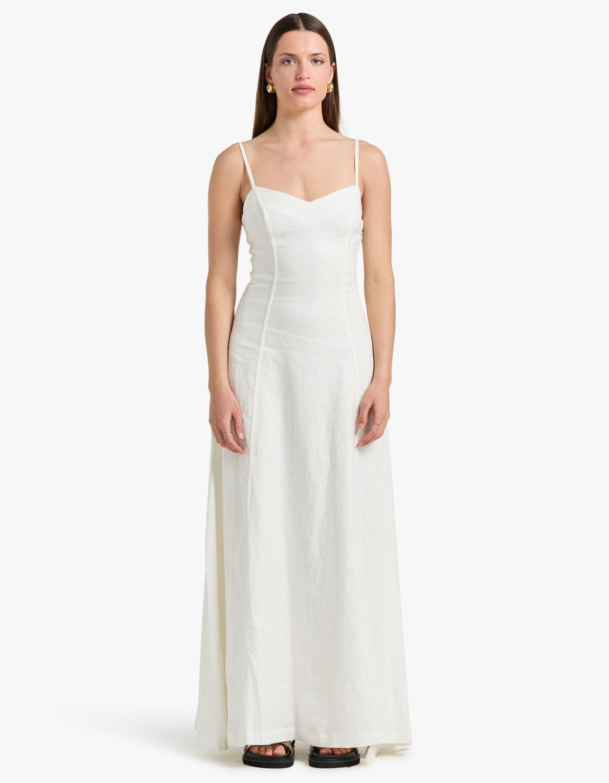 Explore the Hansen and Gretel Maxi Dress in Ivory, a stunning fit and flare maxi featuring spaghetti straps.