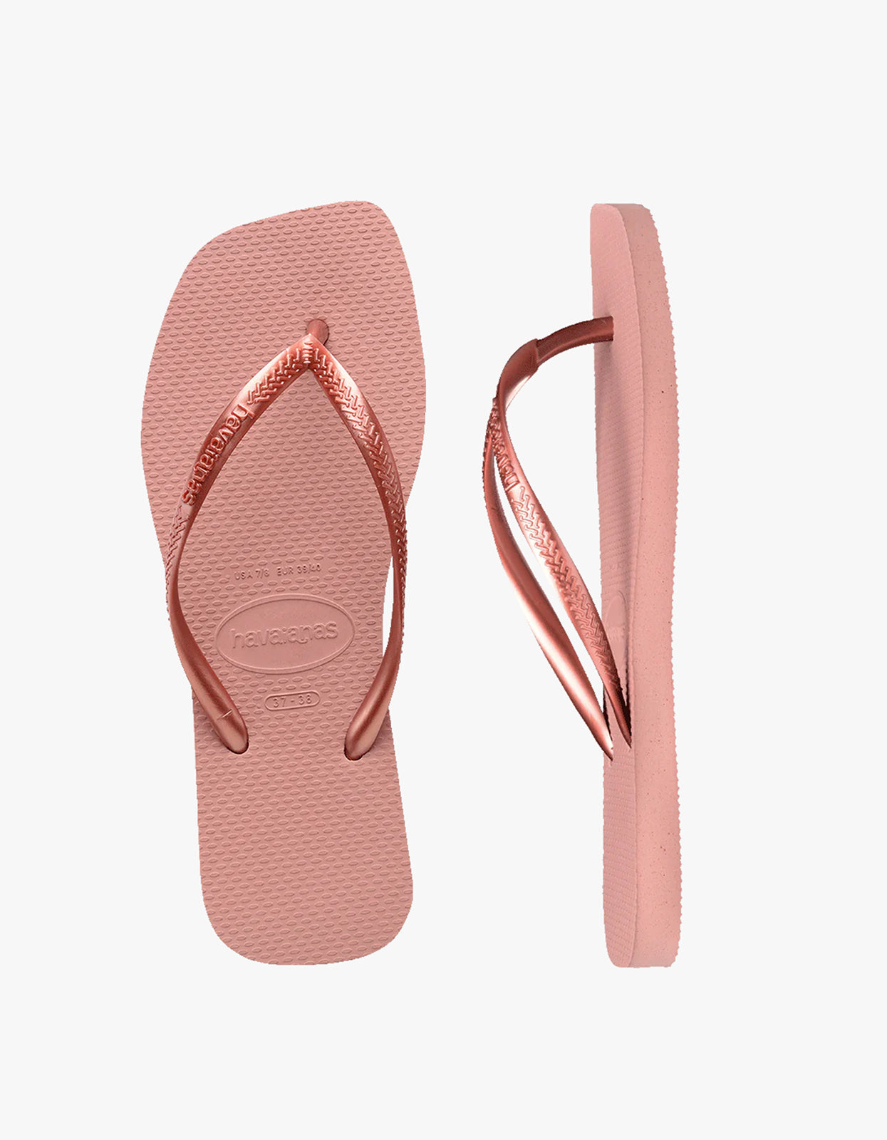 The Havaiana Slim Square Flip Flop is the perfect addition to your summer wardrobe. With a new square toe silhouette, these flip flops elevate any outfit for everyday wear. Lightweight and versatile, these are a must-have for any beach day or casual outing.