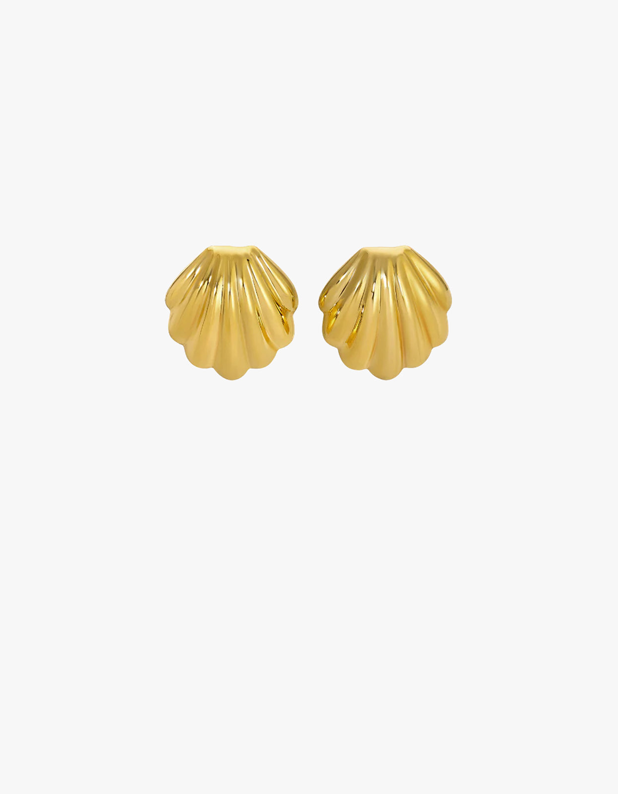 Featuring a stunning shell shape and clip on design, these 14k gold plated earrings are the perfect statement piece for any occasion. Add a touch of luxury to any outfit and feel like royalty.